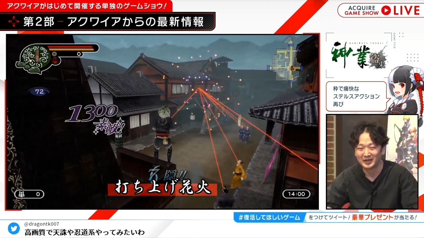 日本 Acquire 預定 2022 年秋天在 PS4/Nintendo Switch 主機上推出,台灣也將會由雲豹娛樂推出繁體中文版的匿蹤盜賊動作遊戲《神技盜來 -Kamiwaza Tourai-》(神業 盗来 -KAMIWAZA TOURAI-),宣布將決定於 10 月 13 日在日本正式上市,定價包裝版 4,400 日圓/下載版 3,980 日圓。至於繁中版,也將會與日版同步於 10 月 13 日上市。