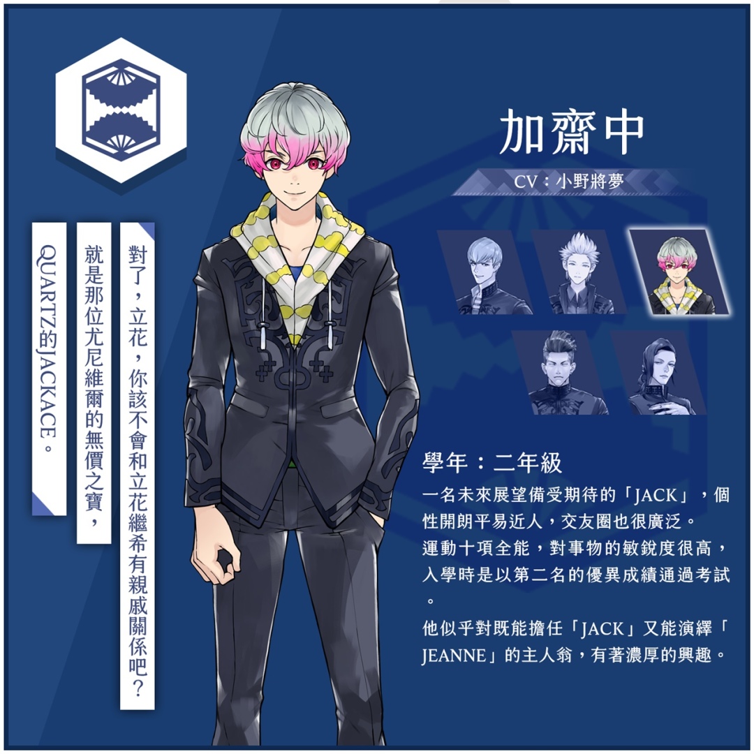 Game Source Entertainment(GSE)宣佈,將首度與日本遊戲開發商「BROCCOLI 」及知名漫畫家石田翠合作,推出乙女遊戲《JACKJEANNE》Nintendo Switch 亞洲繁體中文版。今次將為大家介紹遊戲裡尤尼維爾歌劇學校中四個班級之一的「ONYX」,以及就讀這個班別的角色。