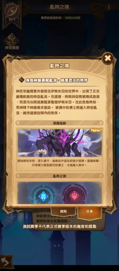 亂時之境全新賽季即將展開!本次改版新增「深層追剿」模式,將於賽季內指定日期開啟,冒險者可以善用信物搭配,挑戰強大的Boss,贏得頭像框、勇者財寶等豐厚獎勵。