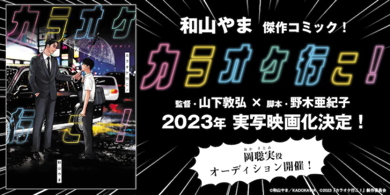 和山やま漫畫作品《去唱K吧!(暫譯,カラオケ行こ!)》將翻拍為真人電影,於 2023 年上映,導演是山下敦弘,劇本由野木亞紀子編寫。