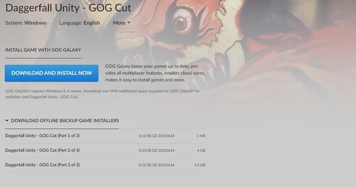 《Daggerfall Unity》為粉絲玩家們採用 Unity 引擎,將《上古卷軸 2:匕首雨》進行重製的粉絲同人重製作品。雖然早在 2019 年就推出 α 測試版,但安裝需要繁瑣步驟而讓許多玩家卻步。至於這次在 GOG.com 下載版,則是冠上「GOG Cut」之名,將整個安裝手續簡易化,讓其他玩家們也能輕鬆下載回味體驗。