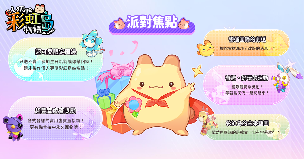 樂意傳播旗下可愛風格線上遊戲《彩虹島物語》即將歡度六週年,營運團隊除了萬分感謝眾多玩家們長久以來的愛護與支持外,也期許未來能繼續與所有彩虹島島民們攜手共度更多美好時光,為此,官方特別宣布於 7 月 23 日舉辦感恩粉絲見面會,邀請玩家一起慶祝這個難忘的美好時刻!