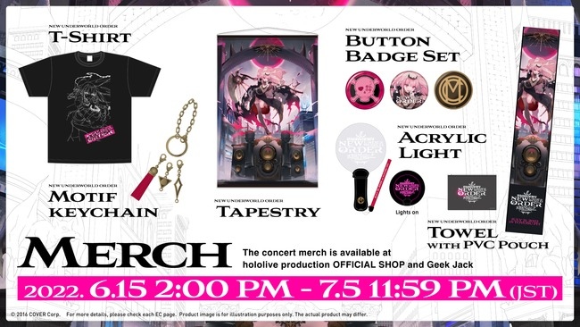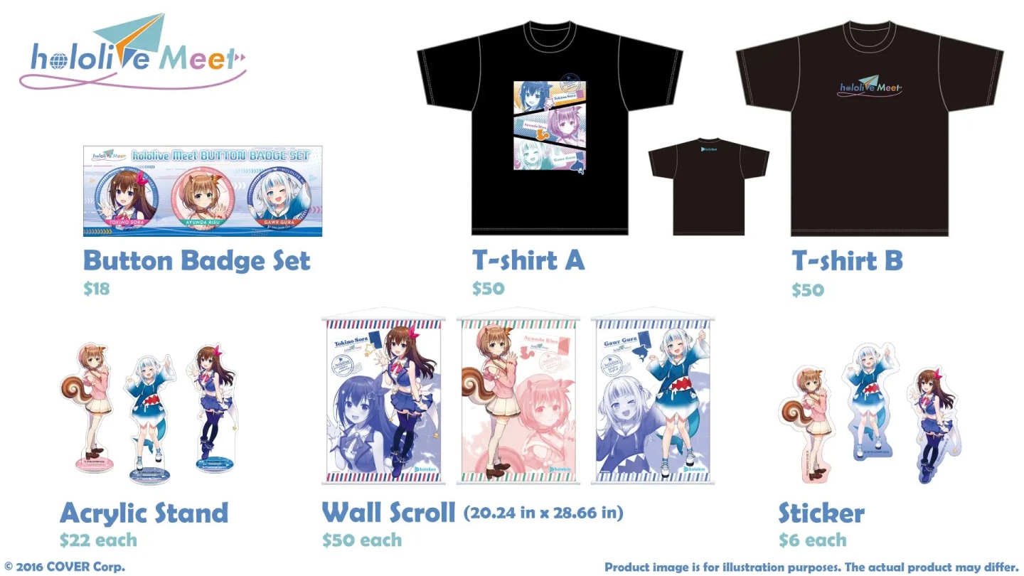 本次除了宣布參加展覽的消息以外,也公開了以繪師「おるだん」設計的主視覺圖製作的一系列周邊商品,此外也包含 Hololive EN 成員「森美聲」個人演唱會周邊和 Comic Market 99 上展出的商品,要讓更多海外觀眾知道 Vtuber 與 Hololive 的魅力!