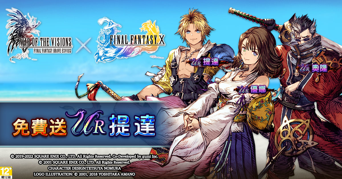 由發行商 SQUARE ENIX 以及其合作夥伴開發商 gumi Inc. 聯手推出的超人氣策略 RPG 手機遊戲《WAR OF THE VISIONS FINAL FANTASY BRAVE EXVIUS》國際版(譯稱:《FFBE 幻影戰爭》),即日起至 8/3 活動時間結束止,FINAL FANTASY X》(簡稱《FFX》)聯動活動正式回歸!眾所期待的《FFX》代表性人物『提達』、『優娜』與『奧隆』已經加入阿朵拉大陸,還可透過精選召喚獲得全新的幻兵卡與召喚獸「瓦爾法雷」。此外,活動期間只要連續登入遊戲,就可輕鬆獲得 UR 兵員『提達』,以及最多 2,500 個幻導石的登入獎勵!