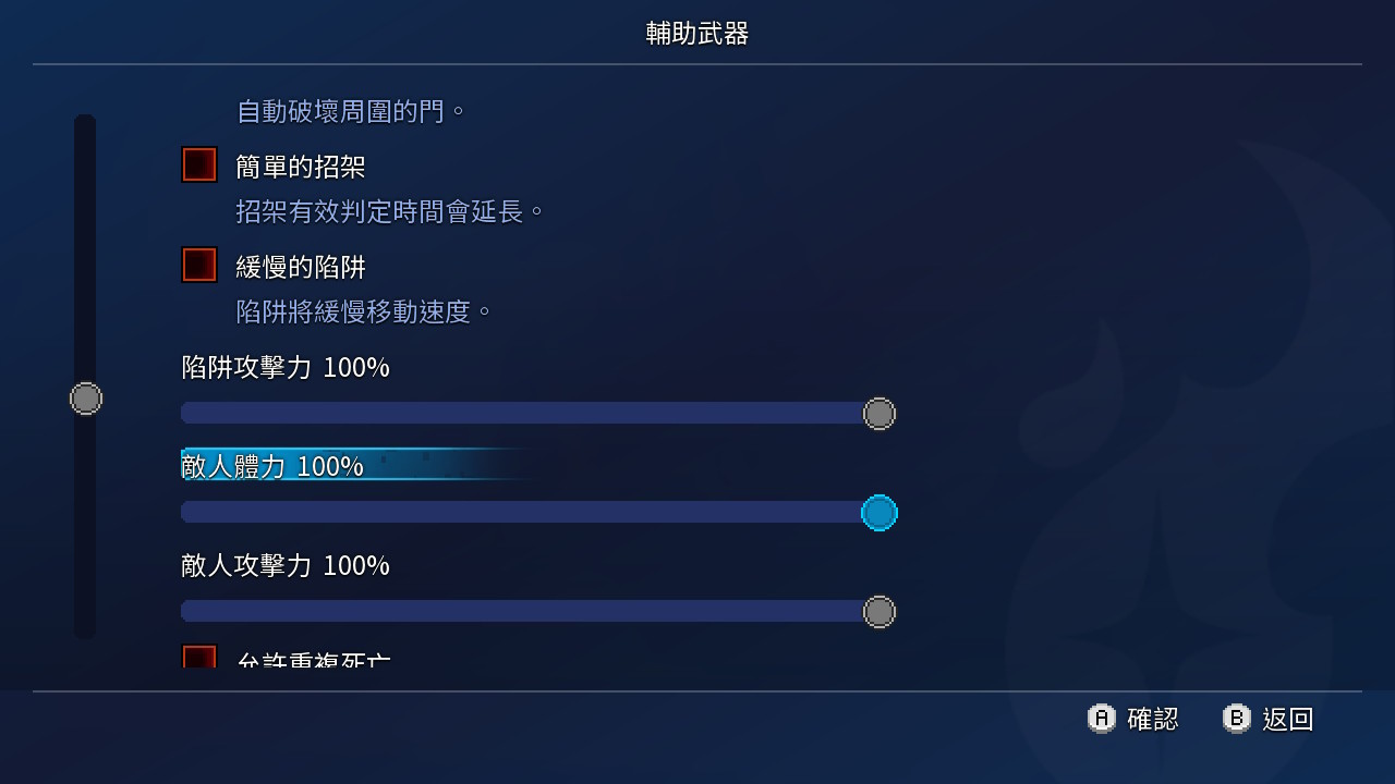 ■新增輔助模式包括敵人體力/攻擊力、陷阱速度/攻擊力、自定義設置招架時機
