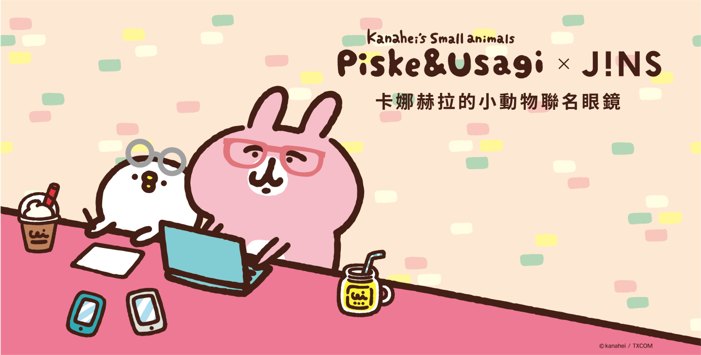 JINS 聯手日本超人氣插畫角色《卡娜赫拉的小動物》,讓地表最萌的 P 助與粉紅兔兔,一起現身在眼鏡上,希望為生活帶來一抹溫暖。