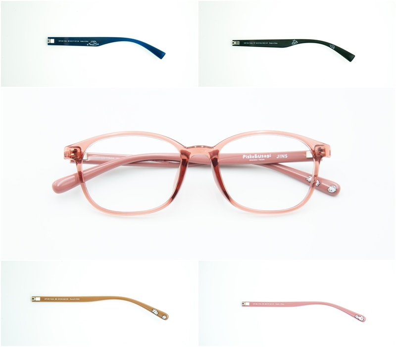 JINS x 卡娜赫拉的小動物聯名眼鏡兩大系列,各有四型三色,共 24 款。Airframe 膠框材質,特別選用可減輕鏡架重量的 TR90,配戴後如同感受到 P 助與粉紅兔兔的慵懶模樣,輕盈舒適,減少鼻樑與耳朵的負擔;金屬框則在框形下工夫,從百搭圓框到潮流多邊形都有,讓每日穿搭造型更加分。