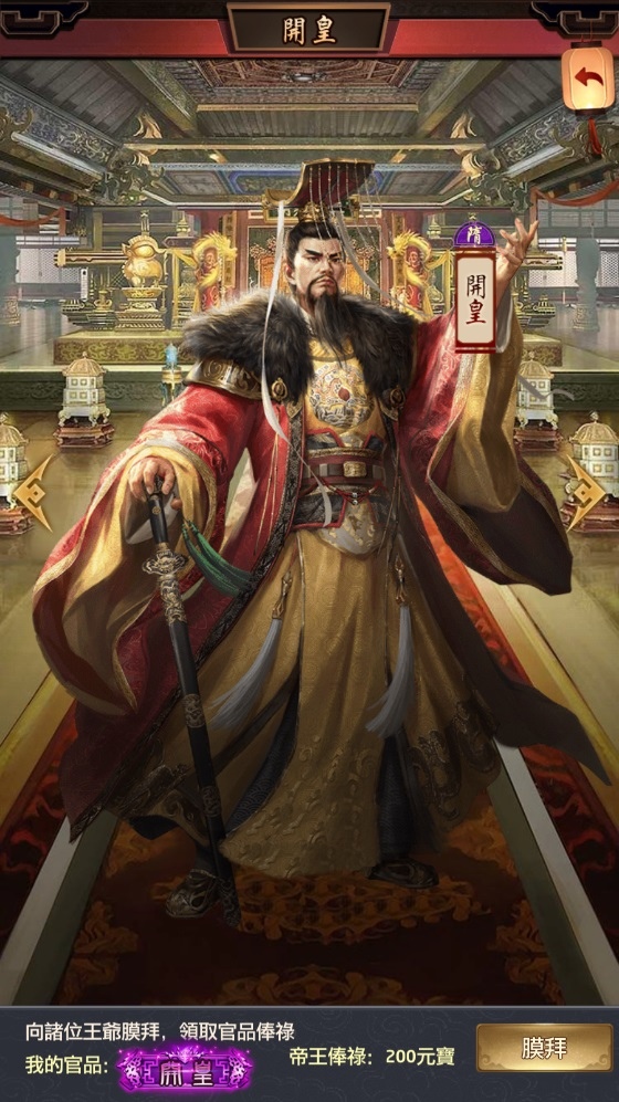 本次更新中,全新實名帝稱號「開皇」霸氣登場!興漢以威弘盛世,開皇之治展豪情,隋文帝結束了南北分裂的局面,實現天下統一,其勵精圖治,開創了輝煌的「開皇之治」,是一個具有雄才偉略的人物!