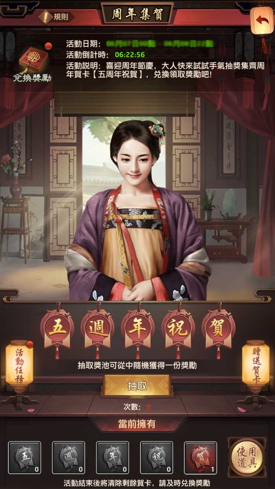 週年慶典福利多,精美皮膚免費得!全新活躍福利活動「週年集賀」驚喜來襲,參與活動收集「五、週、年、祝、賀」賀卡,集齊五字或是消耗指定組合的賀卡即可兌換獎勵,快來試試你的幸運程度!