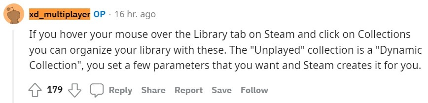 關於如何整理出還未玩過的遊戲問題, Steam 收藏庫有著建立收藏列表的功能可協助達成這項工作