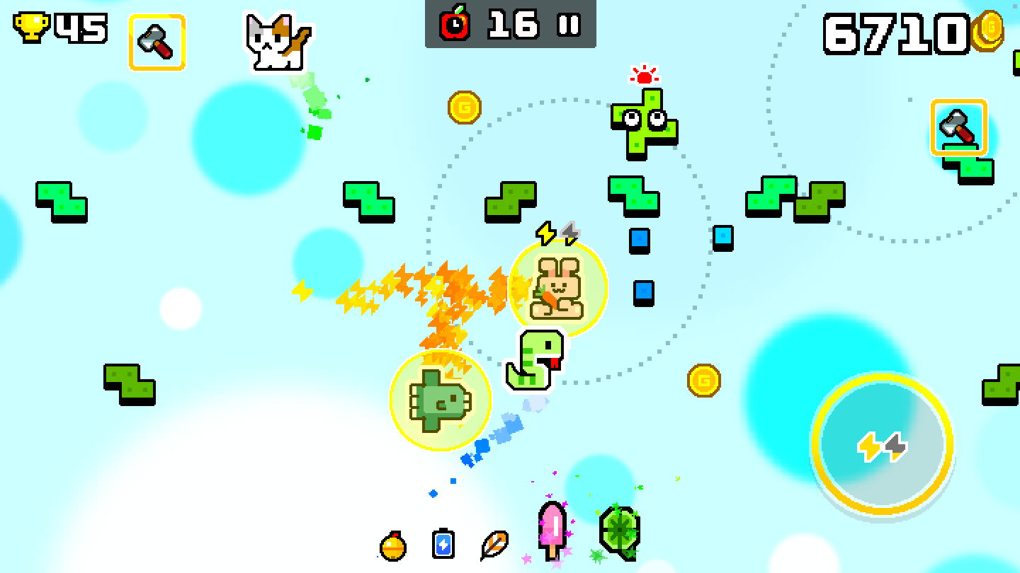 遊戲採用簡單的飛行戰鬥系統,只要滑動虛擬搖桿移動角色,並且善用無敵加速按鈕,就能輕鬆地飛行、衝刺、閃躲,撿取錘子,擊碎方塊怪物。在遊戲內撿到的金幣,可以拿來抽角色轉蛋機。多達 60 多種的轉蛋角色,讓你每次都可以用不同角色出場!