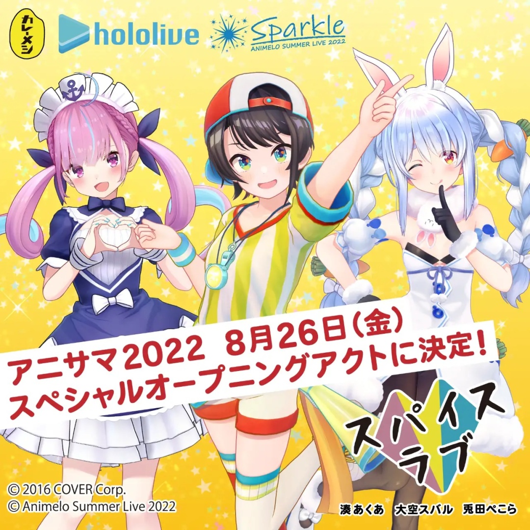 Hololive 的三位成員們本次以與日清合作,為了推廣咖哩飯的特別團體「Spice Love」(スパイスラブ)參加「Animelo Summer Live 2022」的開場表演,為熱鬧的音樂節揭開序幕。