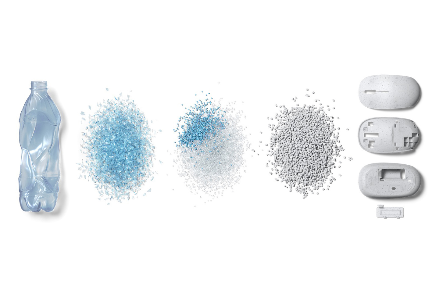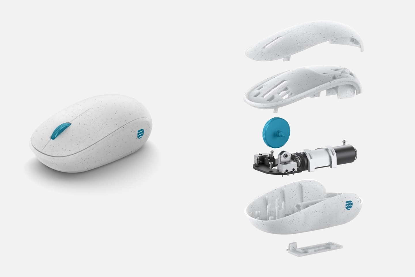 重視企業社會責任的微軟力行永續發展承諾,期許在 2030 年前達成負碳排及零廢棄物的目標,而微軟海洋滑鼠發展計劃也隨之於 2019 年正式展開,希望能回收海洋中的廢棄塑膠再清潔加工製成滑鼠。然而許多回收塑膠在海中漂浮時長期受高溫、紫外線、鹽份等環境因素作用導致化學成份變化,加上作為塑膠主成份的聚酯(PET)在消費電子產品的生產中並不常見,造成了海洋回收塑膠的加工難度。為克服材質特性的困難,微軟聯手合作夥伴 SABIC 成功研發出海洋環保樹脂技術,以一種將 PET 和聚碳酸酯(PC)結合的樹脂混合物作為解決方案,並將此技術對外開放,鼓勵更多企業共同為地球永續發展努力!歷經多次研發與改良的過程,微軟海洋滑鼠於 2021 下半年正式問世,並於今夏登台。整體滑鼠外殼的 20% 採用海洋回收塑膠製成,約等同半個 450 毫升水瓶所產生的塑膠,意即每當有兩支微軟海洋滑鼠被消費者選購,就成功回收並再利用了一個容量 450 毫升的塑膠瓶!