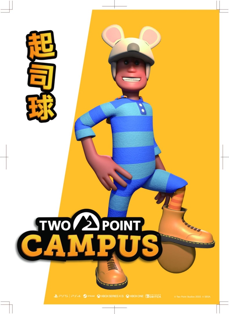 預計於 2022 年 8 月 10 日(三)於 PC & Mac、PS4/5、Microsoft Xbox One、Xbox Series X|S、Nintendo Switch 等平台上推出大學經營模擬遊戲《Two Point Campus》,將推出台灣地區預購原創特典。