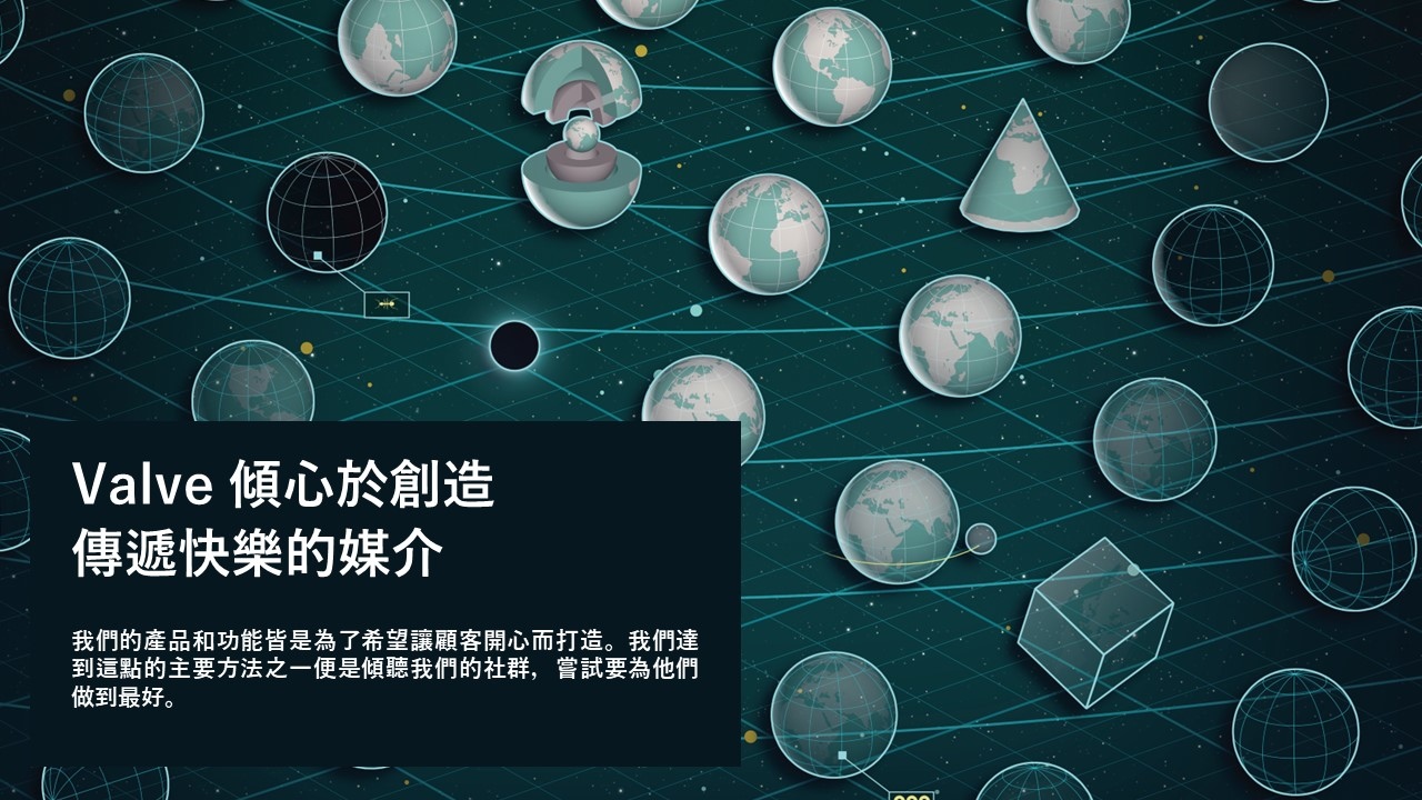 Valve 透過遊戲、硬體與平台等將歡樂傳達給玩家,並相信專注於此,能將產品帶往成功的方向。,Valve 是非典型的公司,採用的是人人都能出意見與構思的扁平式管理組織,但核心宗旨是相信將幸福感傳遞給玩家為最主要的目標。這主因是因為 Valve 能時時刻刻真正的傾聽使用者的需求,將其需求融入告訴我們的產品和服務之中。