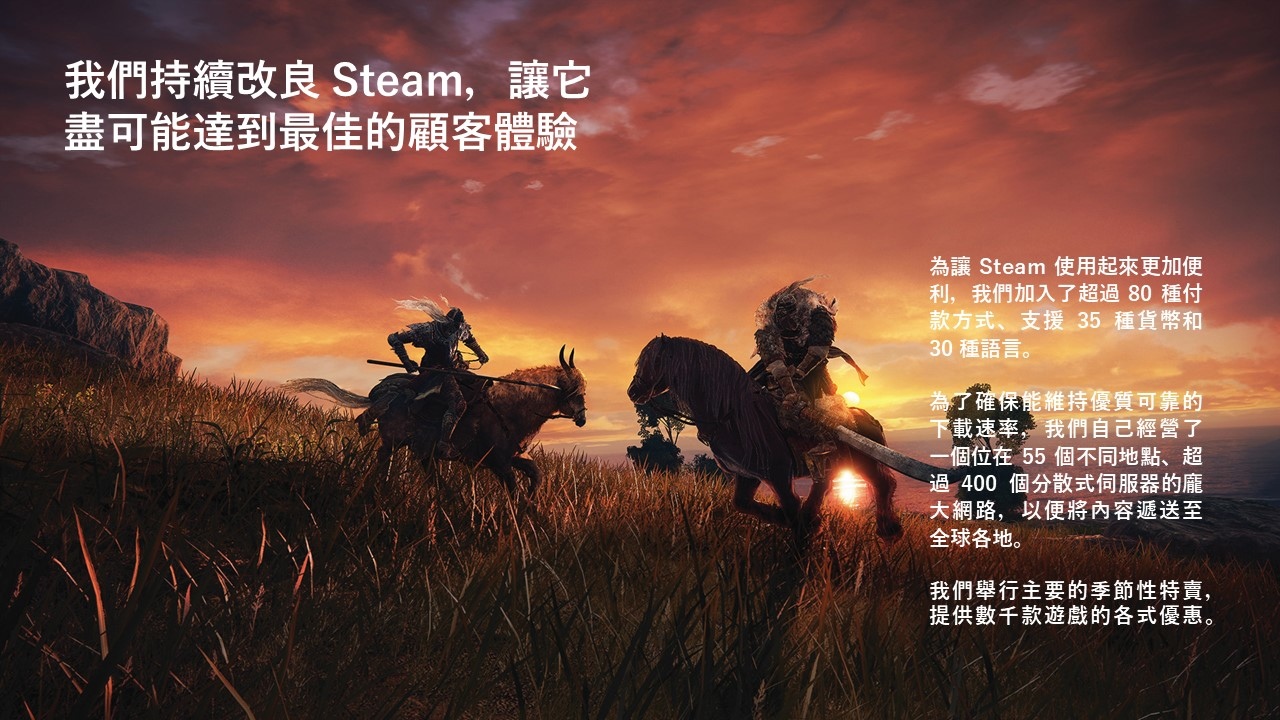 為了讓 Steam 的使用體驗變得更好,Valve 加更多支付方式。及在全世界提供超過 30 多種語言選項,為此建置了全球性的網路系統,有超過 400 台的分散式伺服器並盡心維護,而平台的商店系統也提供全世界玩家季節限定的優惠活動,提供優惠價格購入遊戲。