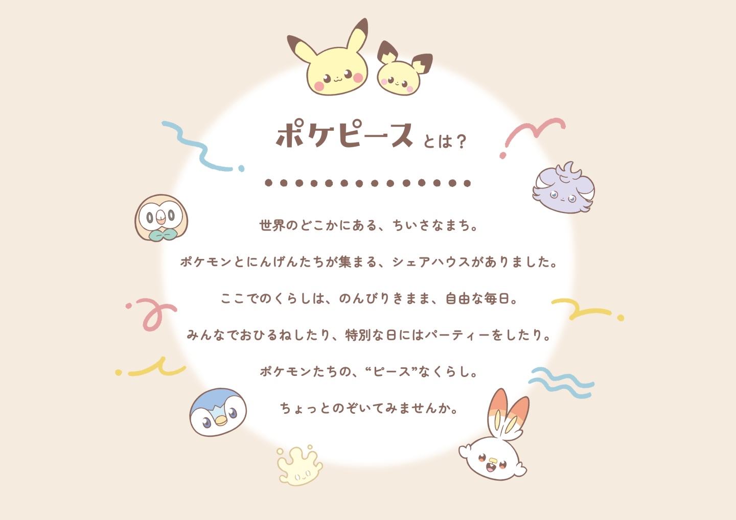 「Pokémon Peaceful Place 寶可夢和平」為一個以聚集著包括皮卡丘、波加曼、炎兔兒、木木梟、妙喵、皮丘與小仙奶等七隻各具特色的寶可夢們共同生活的 Share House 共有空間作為舞台,描述寶可夢們「和平」生活的企劃。這七隻寶可夢生活在位於世界某處小小城鎮裡的共有空間中,過著悠閒自在的每一天,邀請粉絲們一起來欣賞牠們和平寧靜又熱鬧的每天生活模樣。