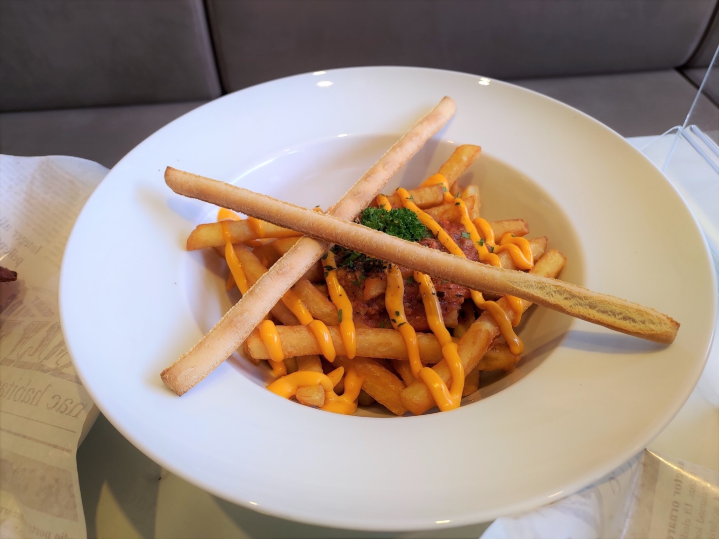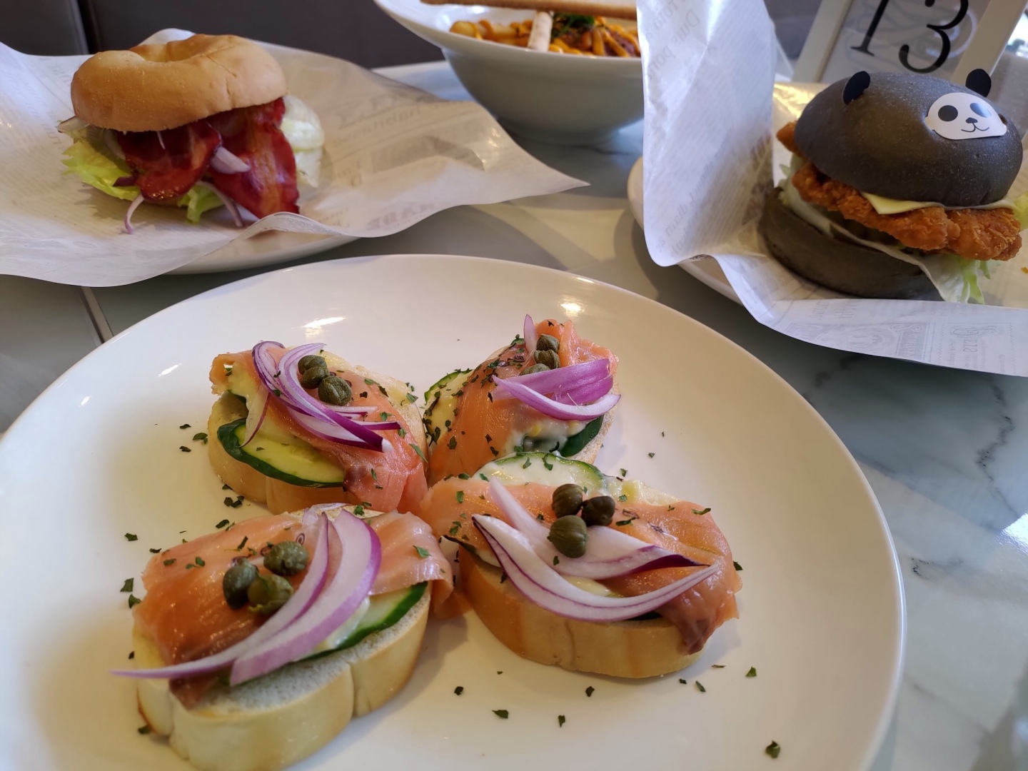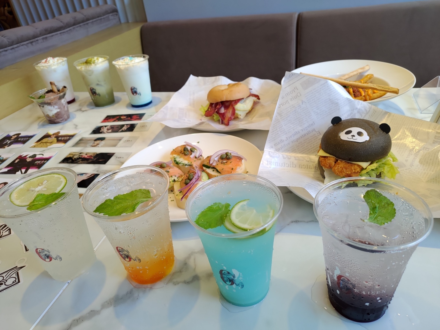這次的餐點同樣將帶來四道主餐,以電影中東京咒術高專一年級生為主題,分別為乙骨和里香定情的「婚戒培根貝果」、狗卷常掛在嘴邊的名言「開放式燻鮭三明治」、印有可愛熊貓的暗黑系「竹炭雞腿漢堡」、真希專屬的「呪具起司肉醬薯條」,只要現場購買餐點即可獲得該角色的書籤卡乙張!甜點部分則有兩款:湛藍色的五條悟「六眼萊姆聖代」、有著漆黑怨念的夏油傑「呪靈操術巧克力聖代」。飲料則是以劇中七位角色為主題的印象飲料,另外購買飲料即可隨機獲得一款杯墊,台中的朋友絕對要來蒐集一波!