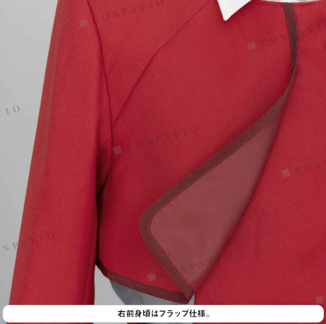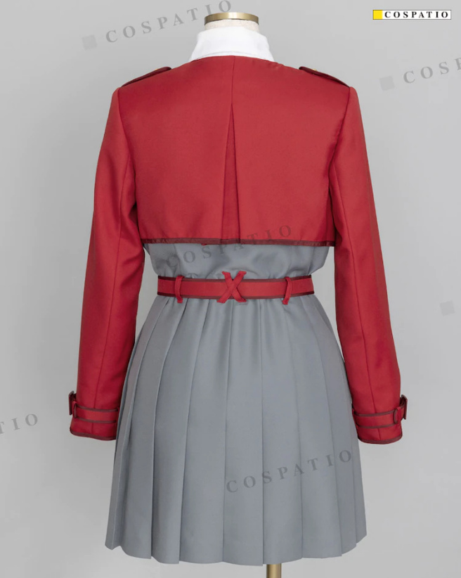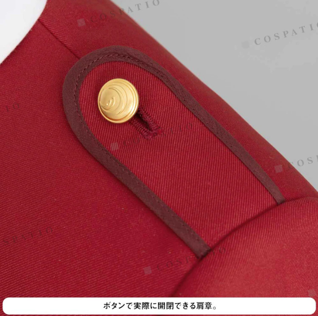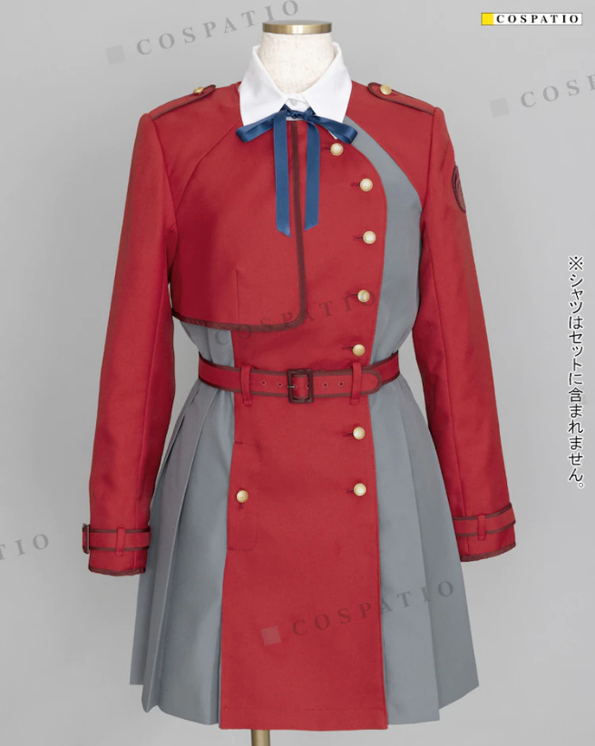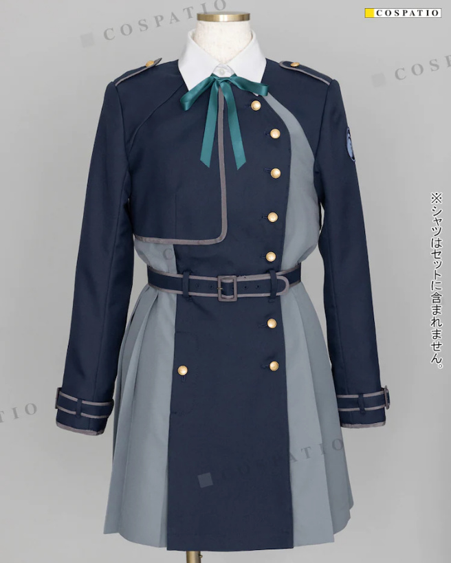 制服成品就如同作品中,是半件外套與連身裙一體化的洋裝,可愛與帥氣兼具的設計透過官方監修後於商品上重現,金色的鈕釦不使用現成品,而是另外開版製作,也都印上機構的徽章;尺寸分為 S、M、L、XL、XXL 五個級距,含稅價格是 49500 日圓。