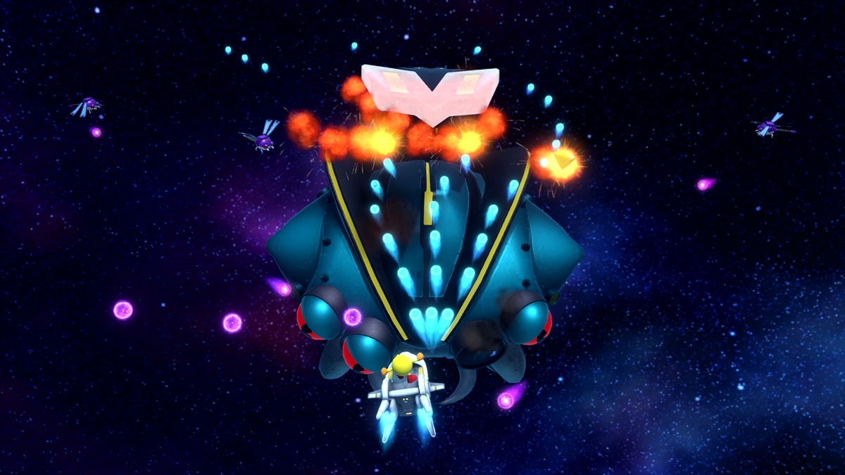 操作太空船,潛入Galaxian軍隊基地的射擊關卡。穿梭於Galaxian之間,打倒King Galaxian。