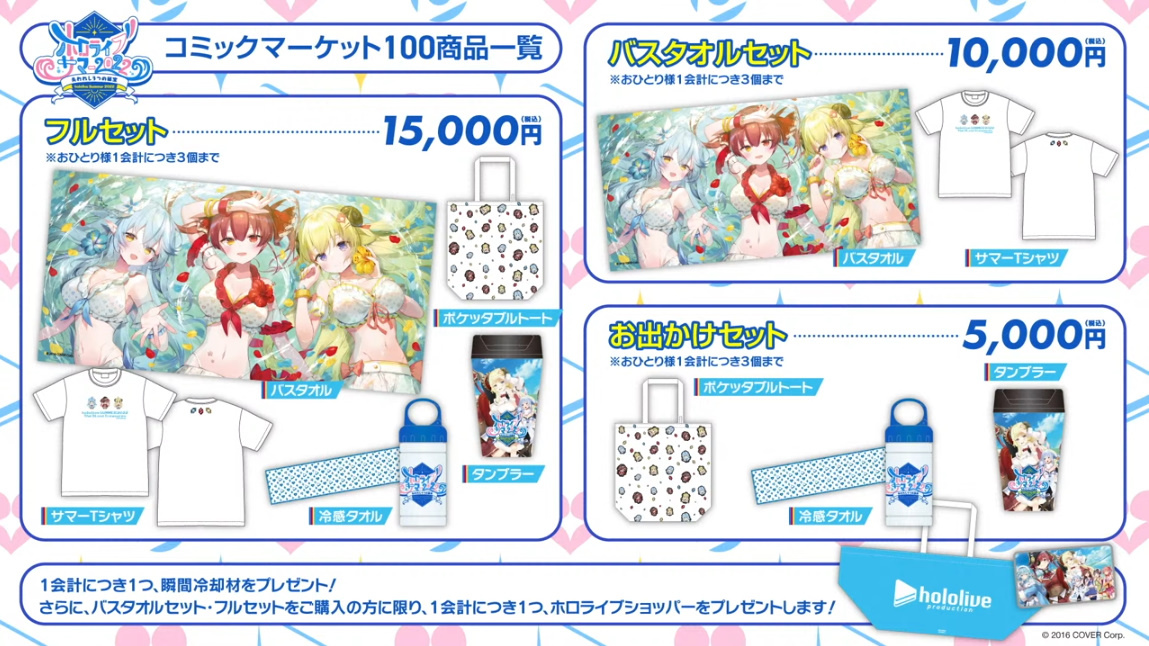 Cover 旗下女性虛擬偶像團體「Hololive」於 8 月 9 日晚間特別節目中,公開了讓粉絲們期待已久的夏季特別企劃「Hololive Summer 2022」(ホロサマ2022)新泳裝造型,也透露了將在 8 月 13、14 日舉辦的「Comic Market 100」中的商品新圖。