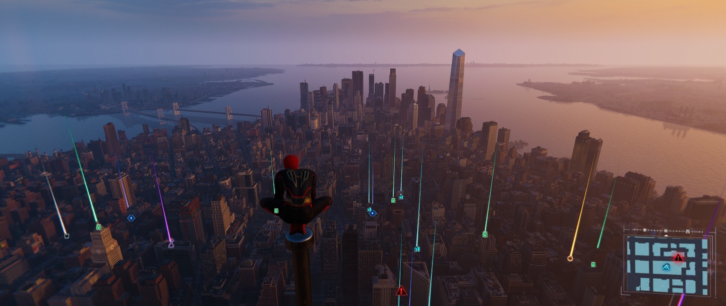 但探索設計流於開放世界的制式慣例,先找到警局電台修復通訊開啟視野,得知地圖上的資源、敵人據點、犯罪活動。裝備、戰衣製作高度仰賴探索程度、壓制不同敵人據點取得代幣才能製作,如果持續進行這些據點壓制很容易陷入作業感,但也可視為替紐約市做越多義舉。玩家所操作的蜘蛛人也會更強,更可以製作基於蜘蛛人系列作品精選出的戰衣。