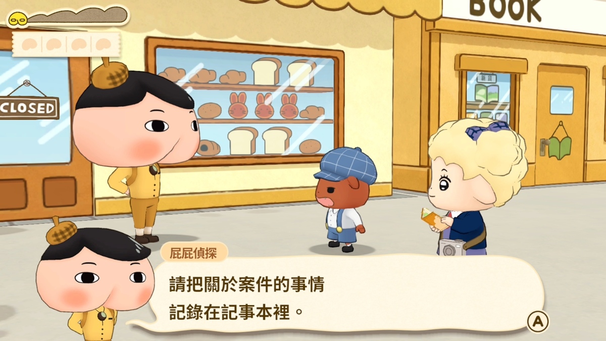 由原作者監修的遊戲原創故事,將保留原作《屁屁偵探》的世界觀展開一場激勵人心的冒險故事。您將成為屁屁偵探事務所中的見習偵探,並與助手布朗以及汪汪警察局的各位,一同解決各式各樣疑難案件。