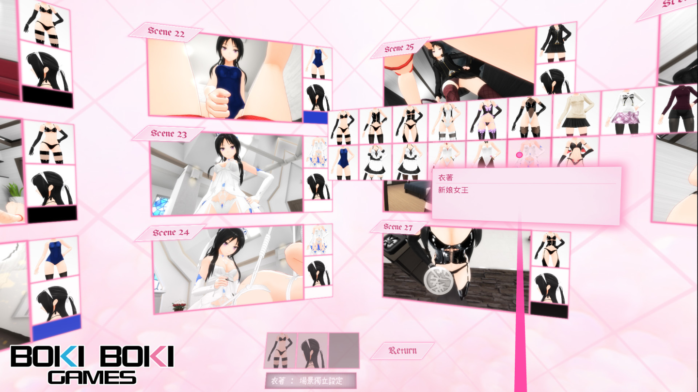 遊戲中的女友-沙希 (女王大人萬歲~~),在造型上有多款服裝可以更換,連髮型都有高低馬尾的選擇(馬尾控的福音啊~~~~~)!由於可以使用VR設備,可以360度去欣賞女主的造型,不論是兔女郎、死庫水、皮衣、婚禮服裝等,穿短裙時就連胖次都能看得清清楚楚!而聲優的配音更讓人欲罷不能,呢喃的低語不斷在耳邊響起,身體將不由自主地升起一陣酥麻快感,皮鞭聲出現時頭皮更是隨之發麻,床上發出的嘰嘎聲響更是勾起內心慾望,不由得讚嘆出一句「斯巴拉西」!