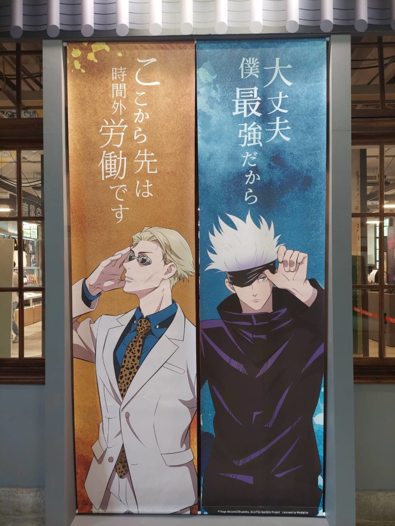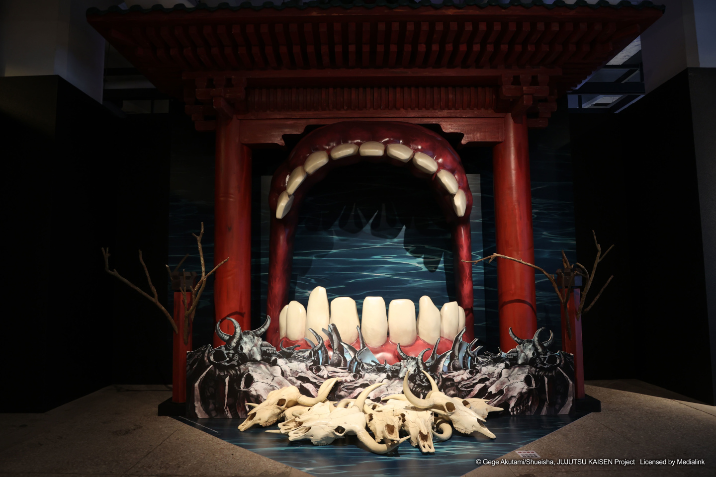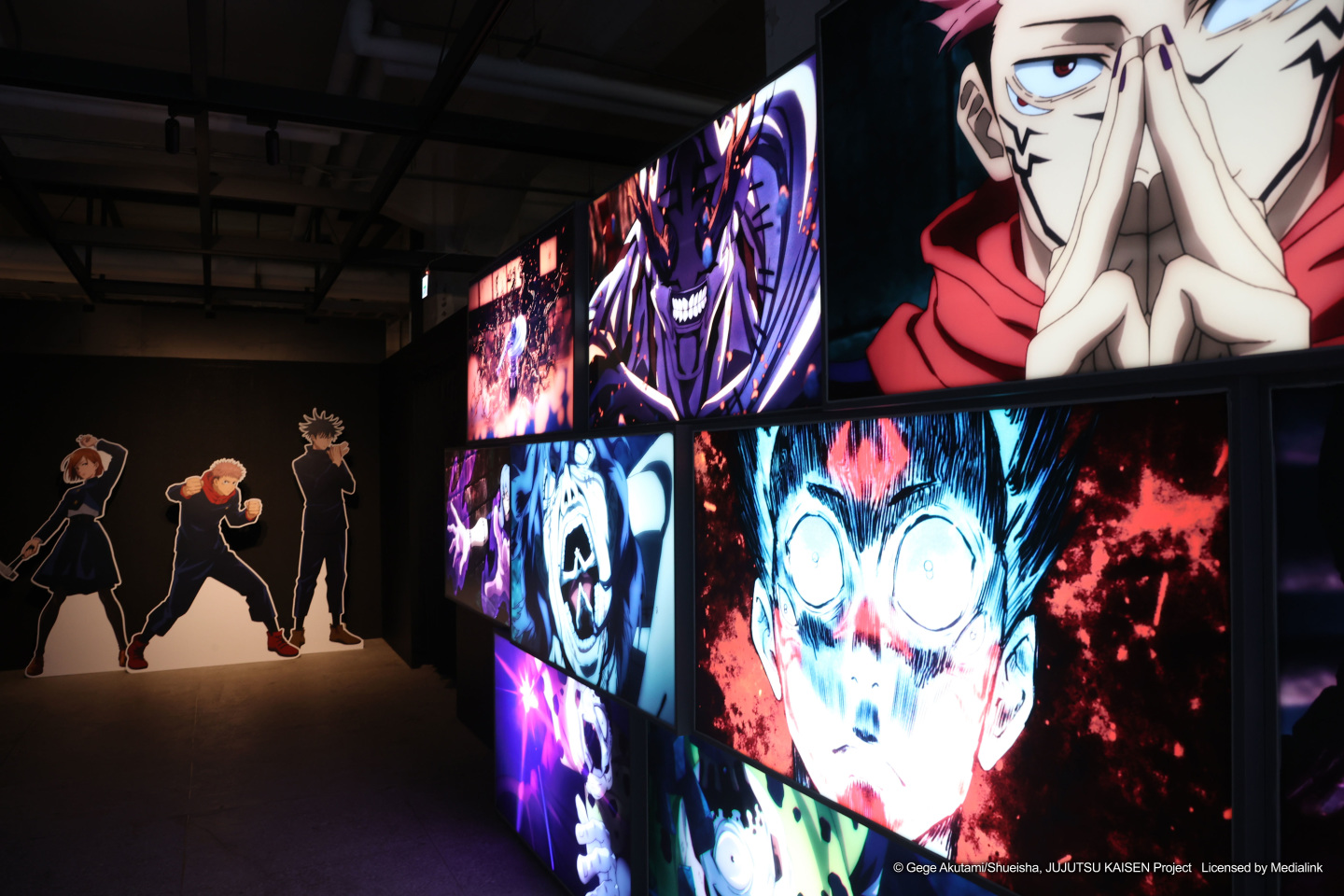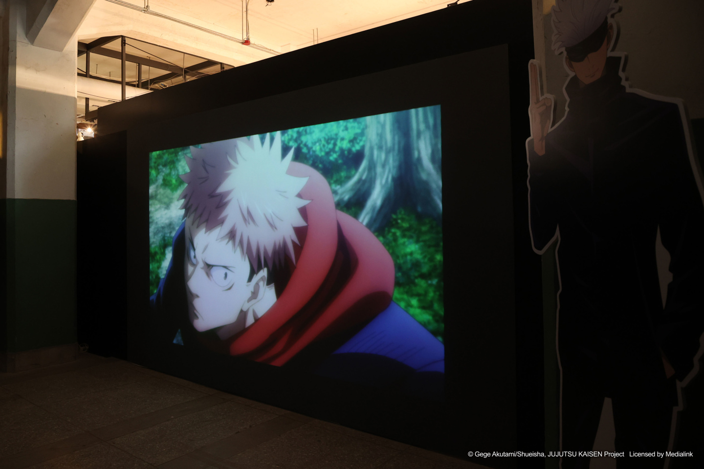 展區更是打造了許多經典場景,包含高達 4 米投影空間沈浸式感受咒術迴戰的世界以及 1:1 打造還原動畫經典場景:虎杖悠仁「執行死刑房間」、兩面宿儺「伏魔御廚子」,更特別以咒術迴戰動畫劇照為主題,運用視覺燈箱設計再次呈現經典動畫場面, 帶領咒術粉絲一同回顧虎杖成為兩面宿儺「容器」、五條悟與咒靈漏瑚領域對決、七海建人對打真人等經典場面,視覺呈現震撼表現,氣勢十足 ,讓粉絲們回味第一季原汁原味的精彩片段。