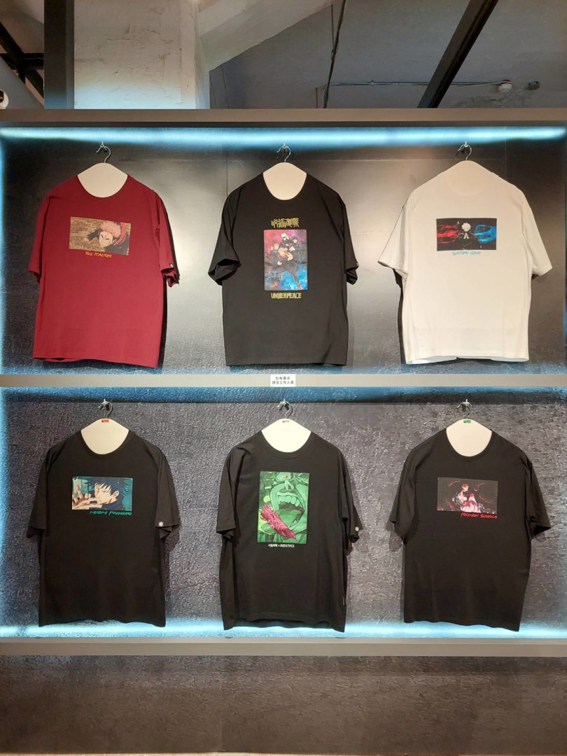 本次活動還特別邀請台灣潮流設計品牌「UNDERPEACE」操刀設計推出一系列咒術迴戰限定服飾, 以虎杖悠仁、伏黑惠、釘崎野薔薇、五條悟⋯⋯等超人氣角色設計出共九款的獨家販售限定劇照 T 恤。 除了角色打鬥劇照搭配刺繡名字外,背後更印有角色經典名言以及加上角色 icon,質感直接躍升,還有近 100 項台灣限定必收周邊,等你來收藏!另外,活動期間也與輕食合作推出快閃店限定「造型霜淇淋」、「角色 icon 造型雞蛋糕」,讓粉絲們好吃好拍又好買!(輕食將依實際監修狀況,另於有點市粉專公告上市時間)