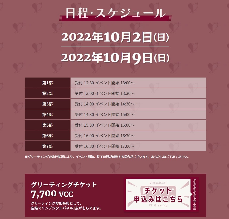 過去舉辦了兩次活動,第三次邀請到人氣 Vtuber 寶鐘瑪琳參加,活動預計在 10 月 2 日與 9 日兩天舉辦,以抽選方式進行,即日起至 8 月 18 日接受申請,船員們趕快把握這個機會,在虛擬空間與船長相遇吧!