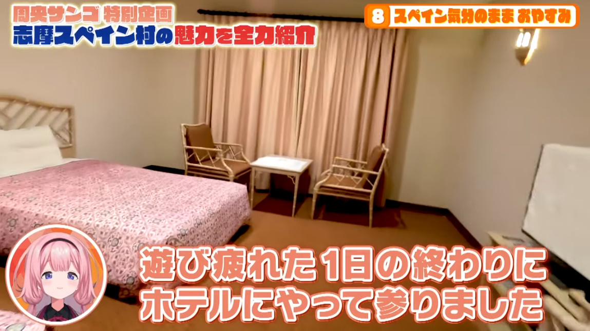 除了園區以外,周央珊瑚也提到了一旁的西班牙村酒店,並享用了豐盛的晚餐以及在舒適的房間中休息,也說到現在來訪的票價與含酒店住宿的特惠票價格設定有多便宜等等,讓她不禁喊出「近鐵最棒!」,在西班牙村還有很多無法用言語和影像傳達的魅力,總之去就對了!