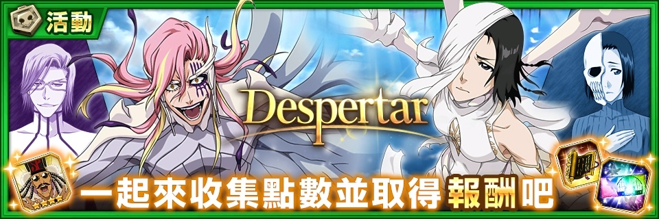 配合「小說SAFWY合作召喚~醒覺~」的開放,全新活動「Despetar」也將自日本時間 8 月 31 日(三)16:00(預定)起在遊戲內登場。「彼此相似、原本都是空殼的兩人。一場命中註定、宛如奇蹟般的相遇,就此改變了他們──」通關活動關卡,來收集點數並獲取報酬吧!