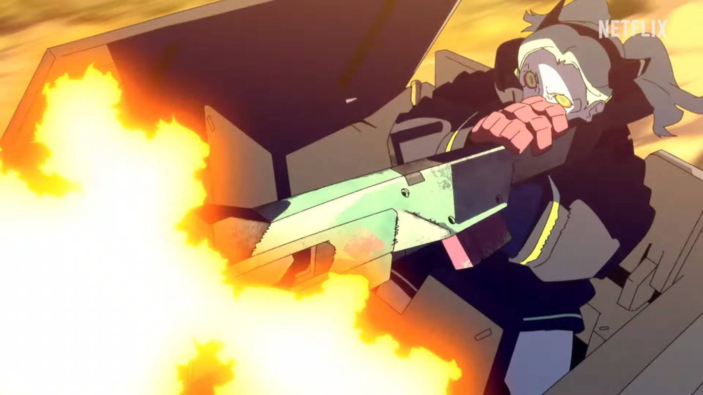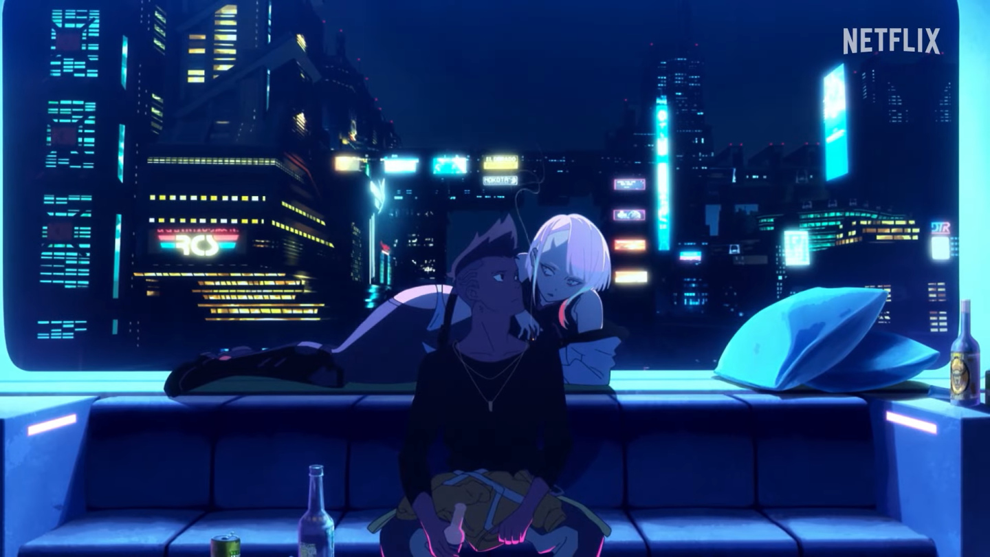 海報上是悠木碧聲演的女主角 Lucy,最終預告中則可以看到 Lucy 在夜城中想要從自己危險的過去中逃開的部分畫面,伴著重新改編過的「快樂頌」,以槍林彈雨及拳打腳踢作為拍子,子彈跟爆炸場面比比皆是,看起來確實是相當過癮又重口味的一支預告;畫面中有許多強光、血腥及性暗示畫面,除了無法外連影片之外,官方也呼籲最好不要在公共場合觀賞。本作延伸自遊戲作品《電馭叛客 2077》世界觀,描述失去一切的少年成為傭兵的故事,動畫由 TRIGGER 製作,導演是今石洋之,角色設計兼總作畫監督是吉成曜。