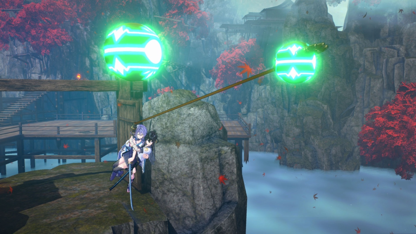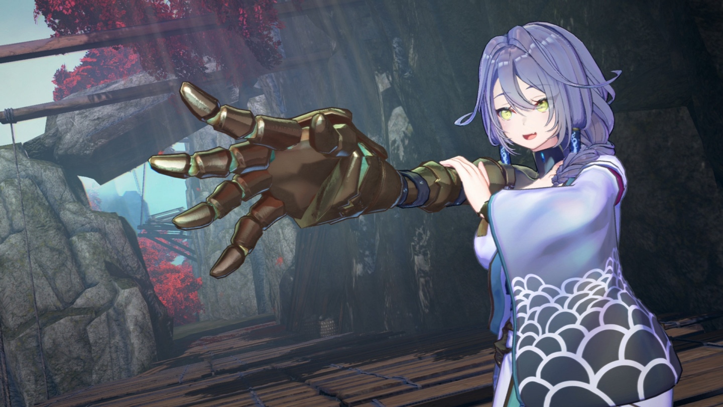 另外,玩家還可以活用刃鋼的機關手腕伸縮技巧快速將敵人拉到自己眼前,或是讓刃鋼抱著女主角快速移動到遠方立足點,讓整個戰鬥節奏更加快速更具效率!