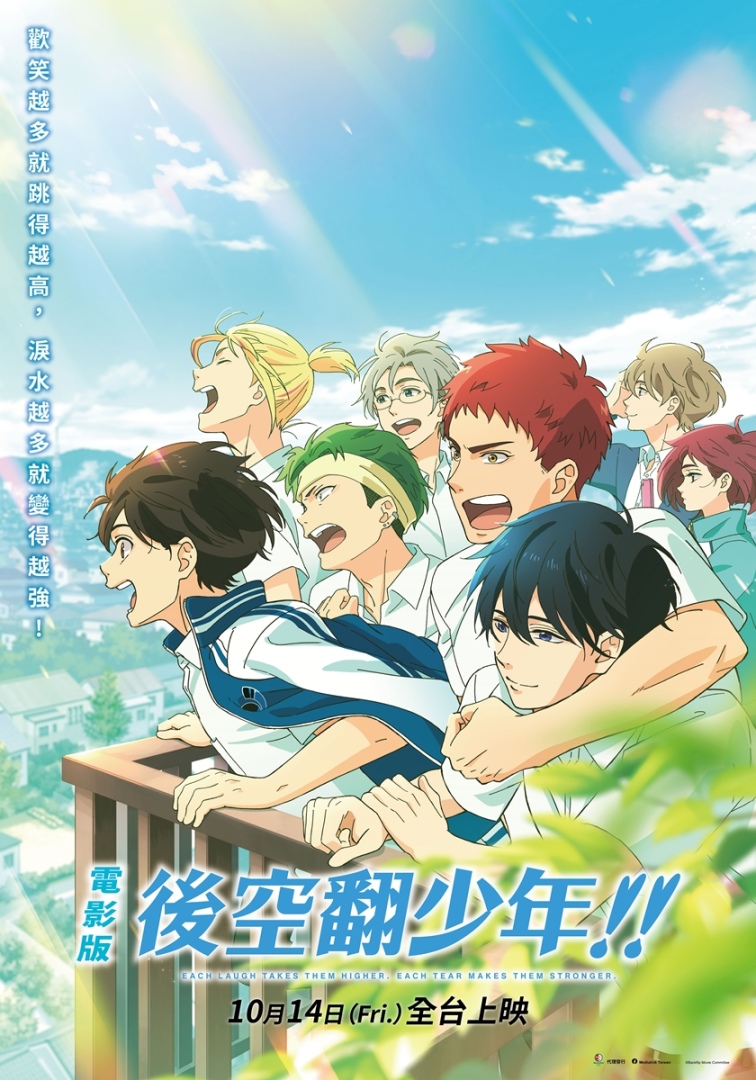 《電影版 後空翻少年!!》原作為四木鉛筆,由《啟航吧!編舟計畫》的黑柳利允擔任導演,《重神機潘多拉》、《紀錄的地平線》與《超時空要塞》等多部知名劇本的根元歲三擔任總編劇。電影將於 10 月 14 日正式在大銀幕上與觀眾見面。