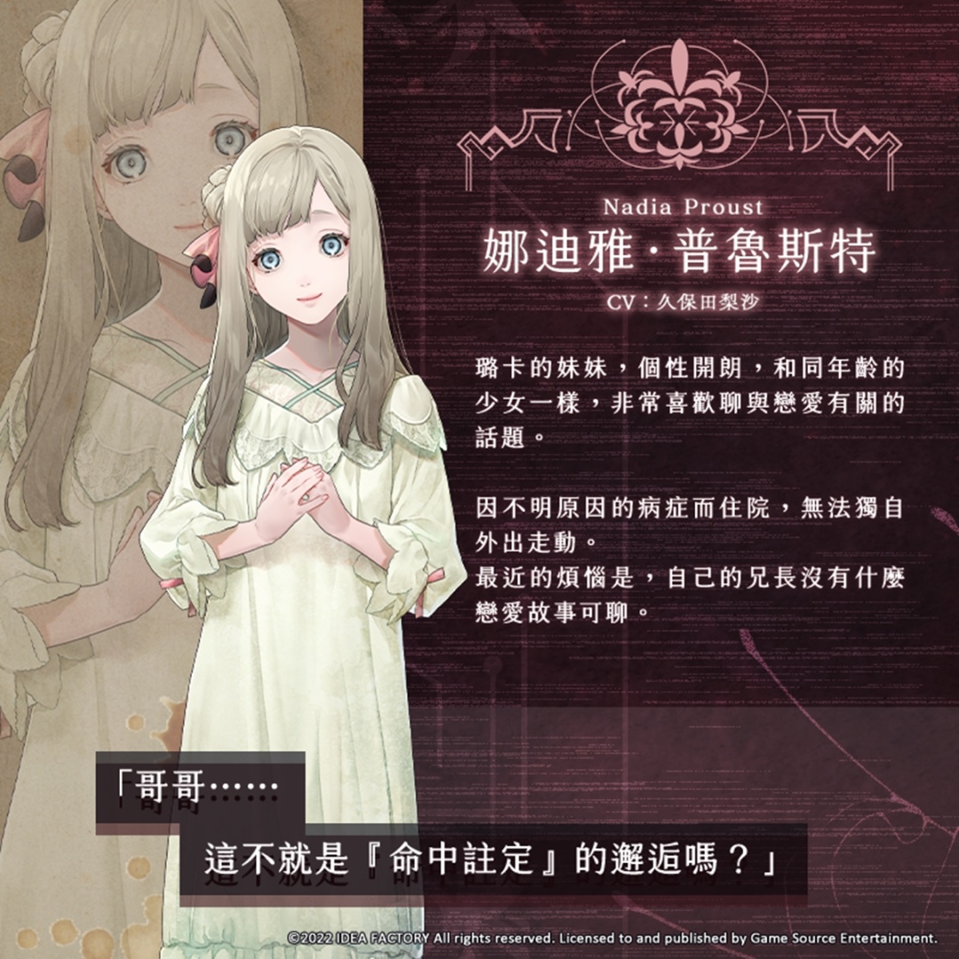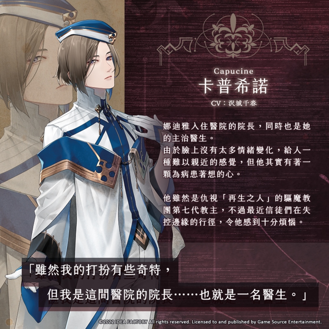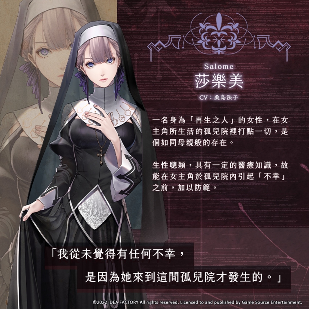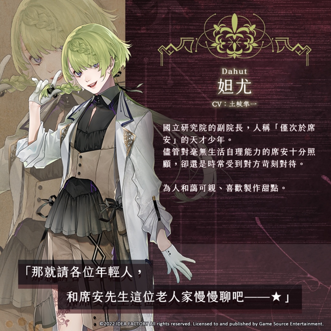 Game Source Entertainment(GSE)宣佈,再次與著名日本遊戲公司「Idea Factory」旗下乙女遊戲品牌「Otomate」合作,預計於 2022 年內推出人氣乙女遊戲新作《終遠的威爾修 -ErroR:salvation-》Nintendo Switch 亞洲繁體中文版。今(8)日會為大家介紹 6 位配角角色。