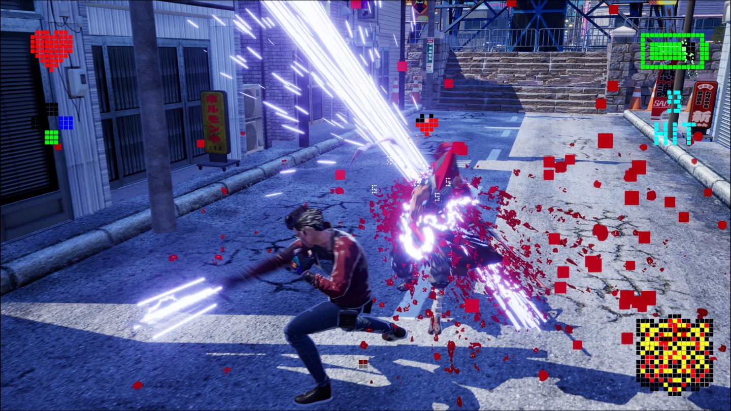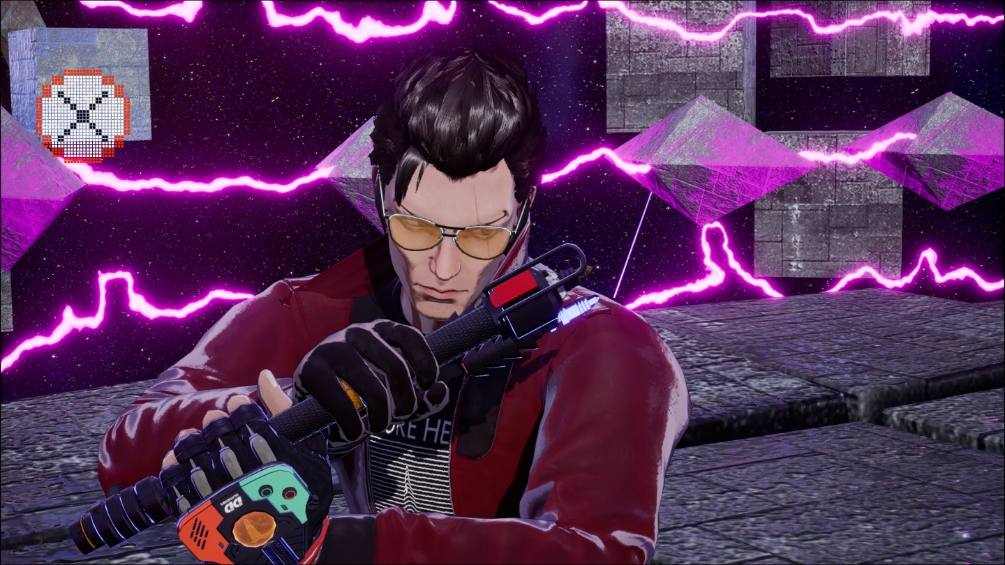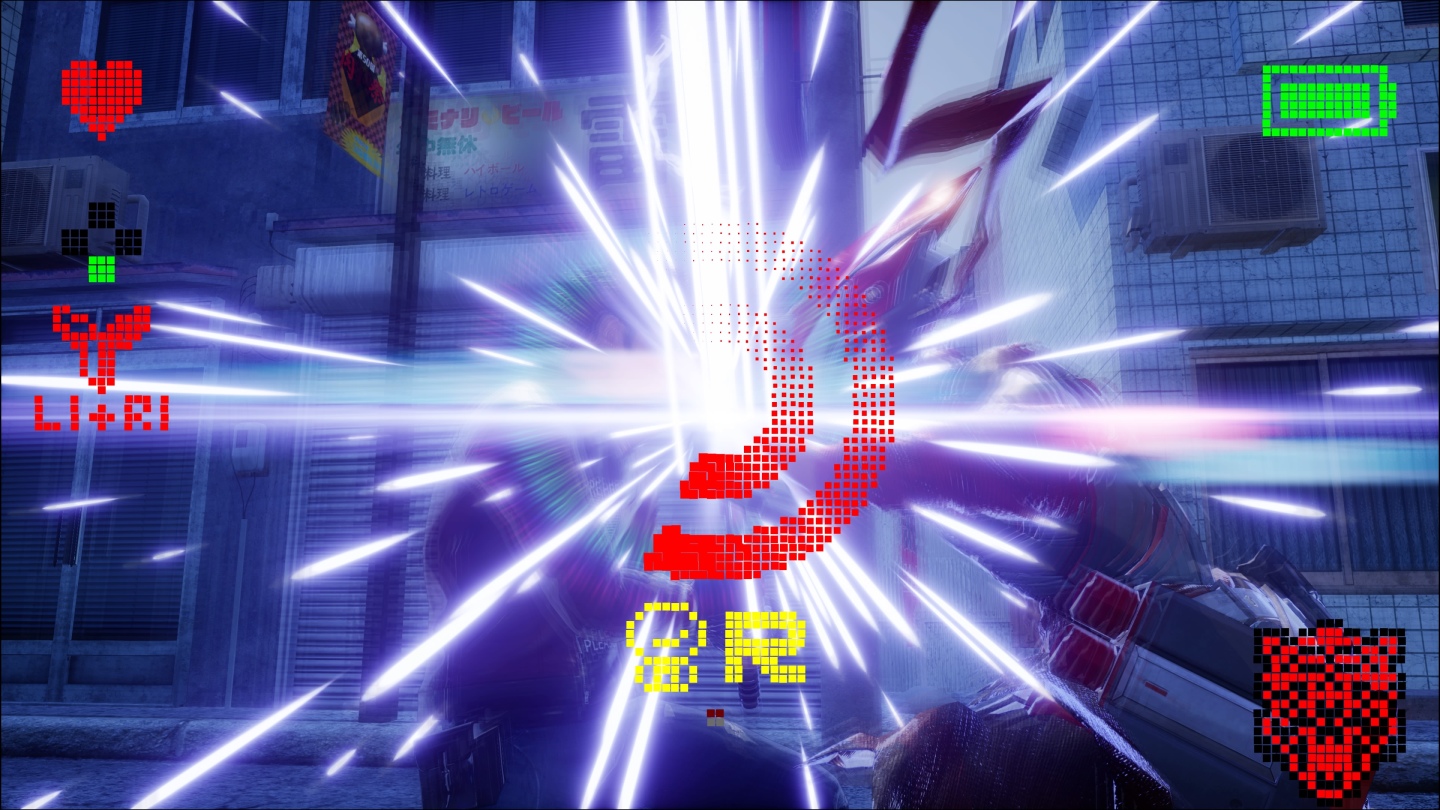 戰鬥上更是簡單暴力,須田剛一製作人傾聽了系列粉絲的需求,在本作你只需要拿起像是《星際大戰》的光劍,就可以砍翻不同來路的外星人,只要是你看不順眼的,揮舞光劍就對了,當然也保有系列必備的「充電」要素,光劍沒電時就得進行充電了。特拉維斯也能使用他的摔跤手動作以及死亡手套,將敵人噴濺的血以像素灑滿整個畫面。