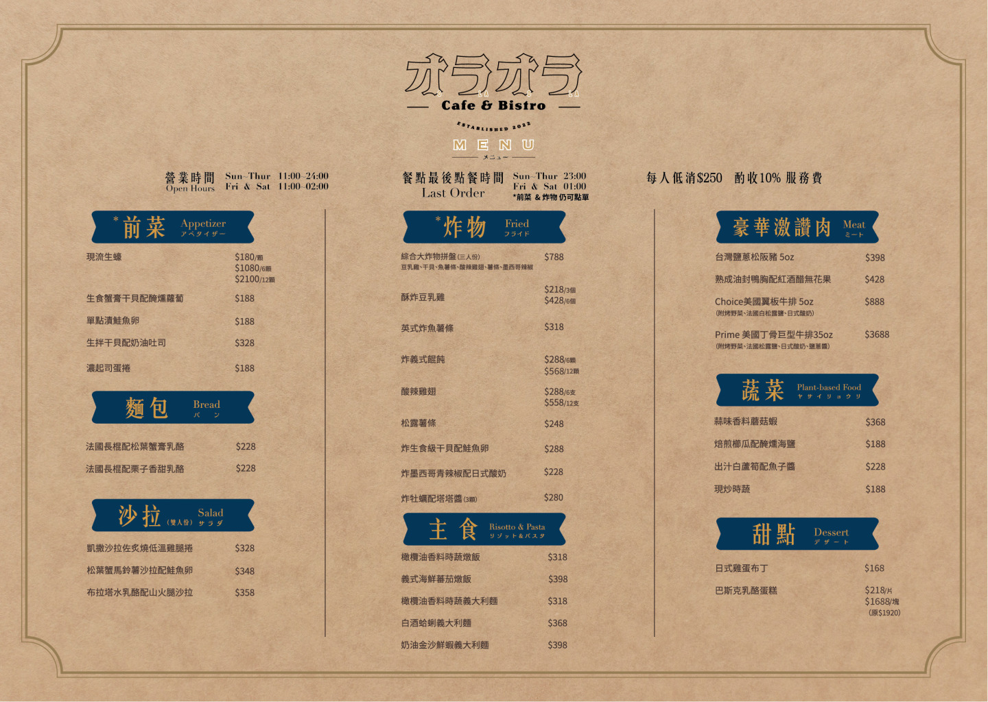 5.歐拉歐拉オラオラ保留活動更改與最終解釋權。若因疫情而調整營業資訊,後續將公告於歐拉歐拉オラオラ臉書粉絲專頁。