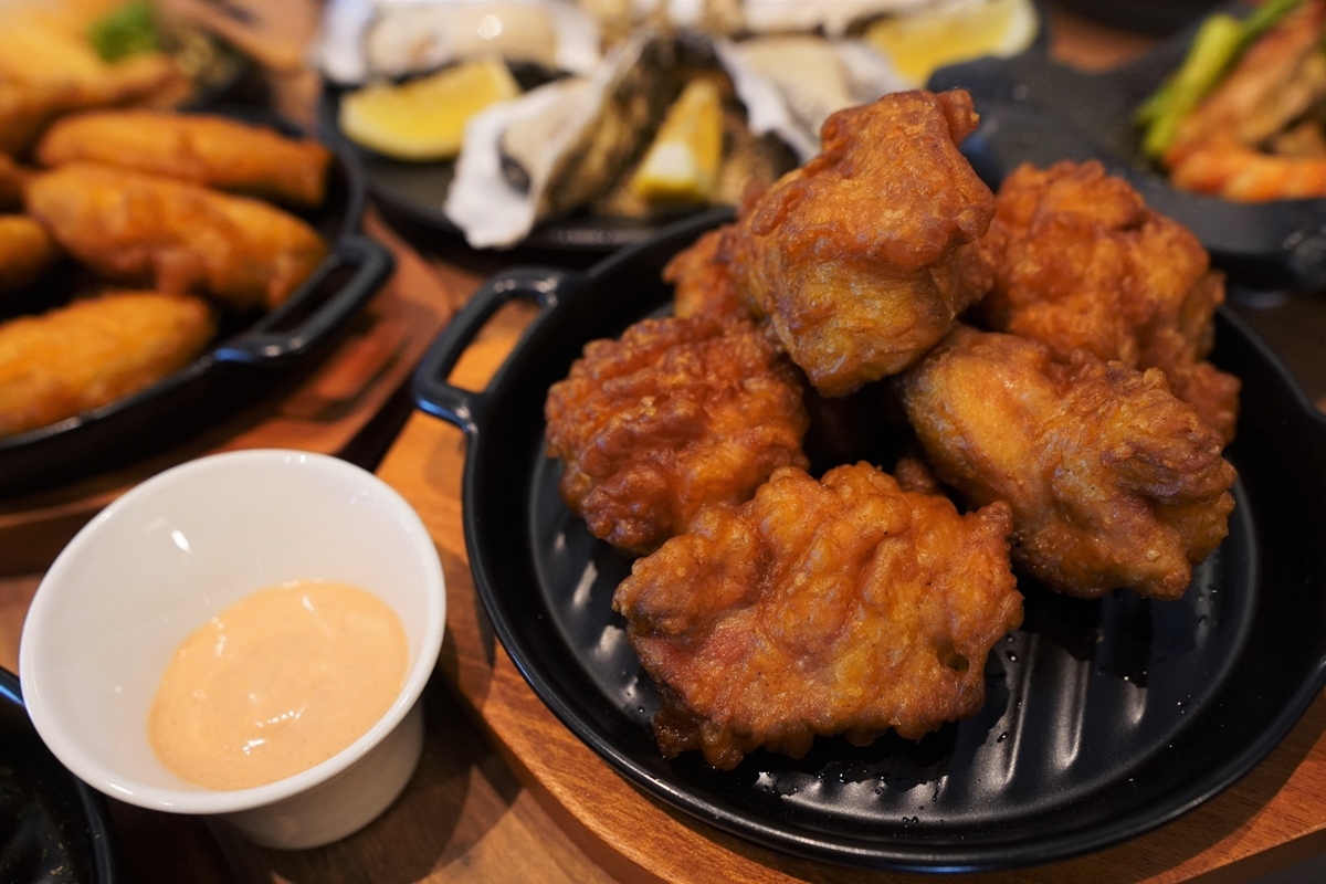 「歐拉歐拉オラオラ」餐酒館融合日系風格洋食,打造出精緻特色餐點,從「英式炸魚條」、「美國翼板牛排」,到「現流生蠔」、「法式長棍配松葉蟹膏乳酪」,甚至還有「義式炸餛飩」,能夠一次品嚐到各式各樣的特色料理,在一級戰區的信義區街頭,開創出屬於自己的特色。當然,做為一間餐酒館,絕對少不了各種好喝的調酒,像是紫色系夢幻風的「紫晶璀璨」,和以蚌殼作為器皿特色打造的「藍海迴聲」都超級吸睛,是好喝又好拍的必點單品。
