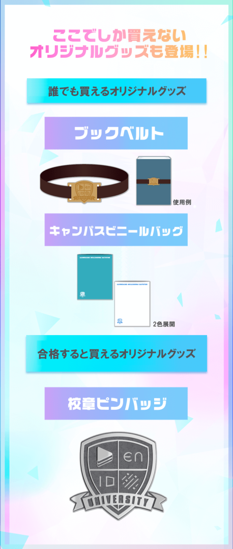 此外為了紀念「Hololive Production 檢定」舉辦的限量商品已經推出,沒有參加考試的人也能購買紀念書帶和校園塑膠袋,至於校徽胸章則是只有報名檢定者才能購買。