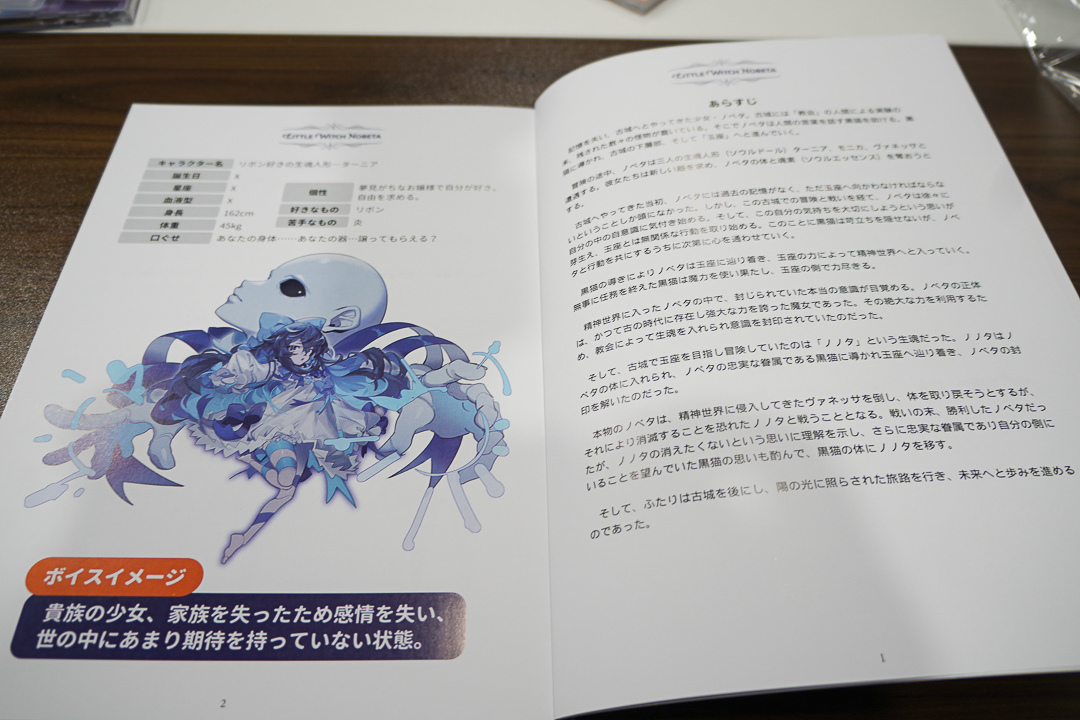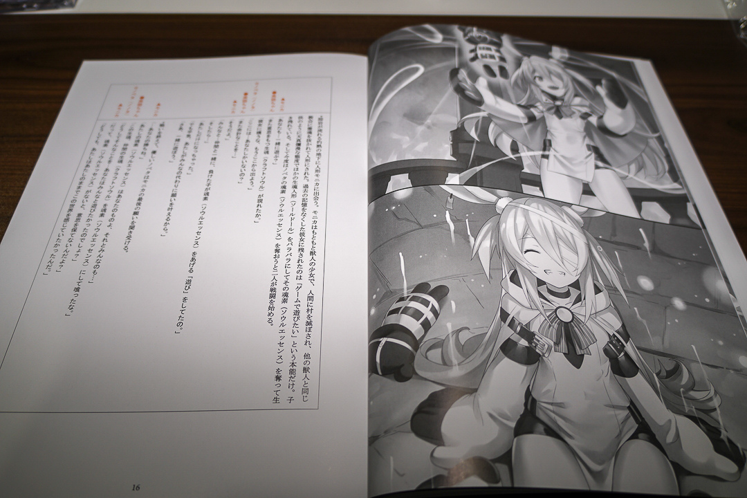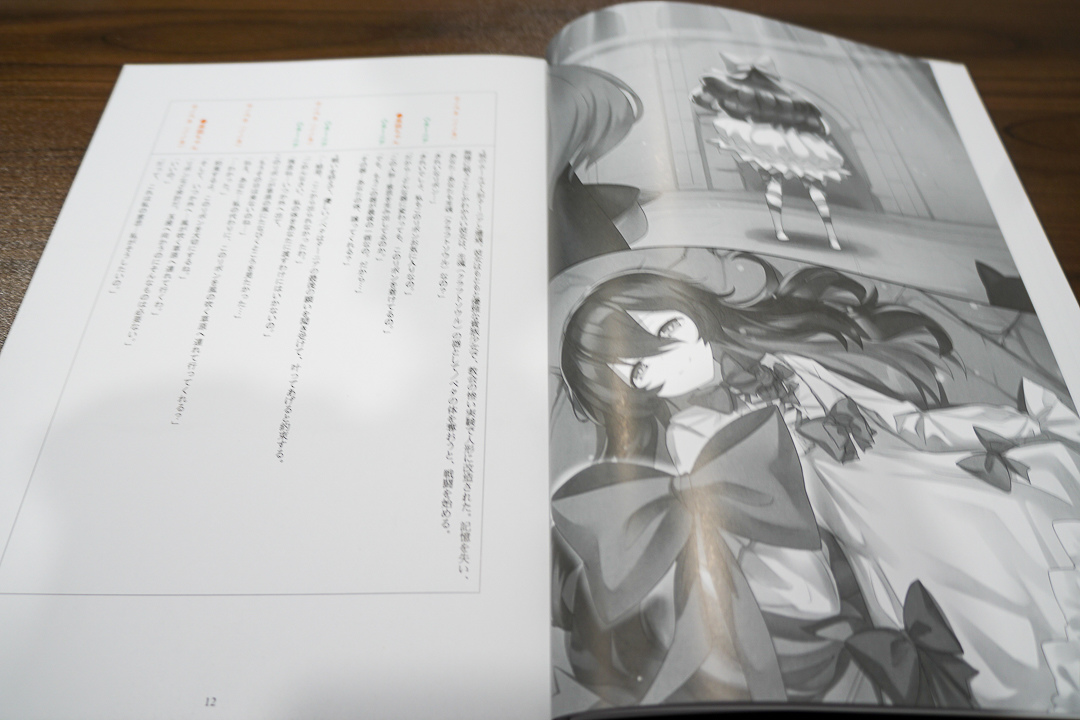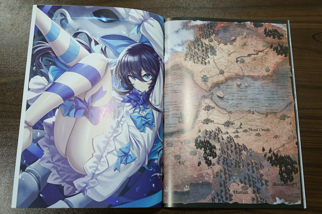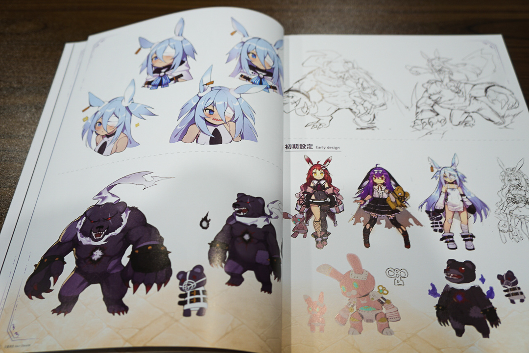 特典畫冊則是重度暴雷的全收錄相關設定,基本上不建議怕被劇透的玩家破關前翻閱,遊戲收錄了所有角色的原案、未採用設計,以及不存在於遊戲中的「地圖」與カントク(監督)繪製,以及 こうましろ、フカヒレ、Guchico、パセリ、LM、ONEKO 等繪師創作插圖。