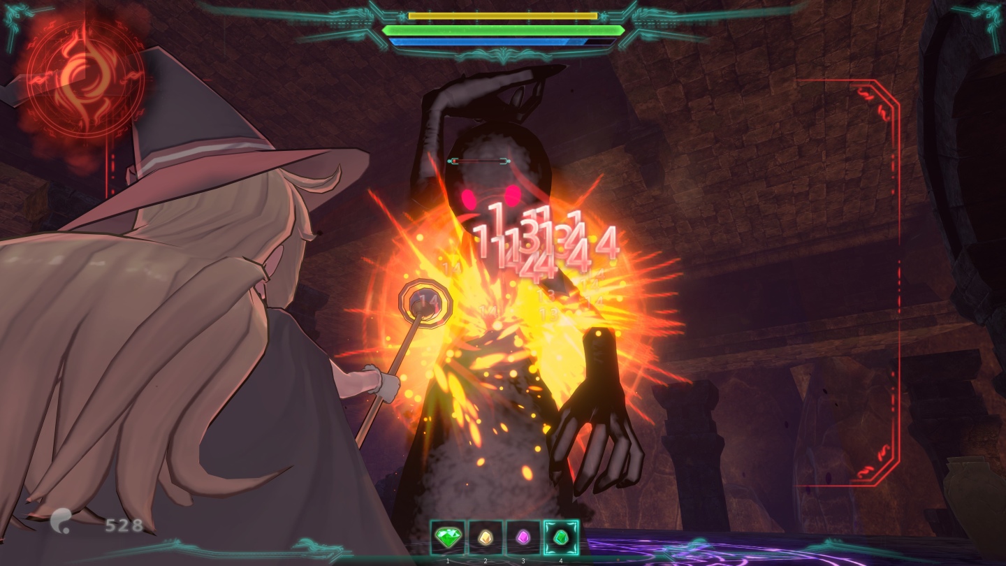 除套用「魂系」法則,本作「魔法」的表現更像是第三人稱射擊遊戲,法術形式以單發狙擊、散彈、連發機槍形式呈現在搶先體驗版初期的三系魔法上,加入雷屬性更為強力的魔法施展,讓害怕近身攻擊怪物的玩家,也有機會遠程攻擊狙掉敵人。其餘元素魔法則賦予小魔女更多的移動手段,像是衝刺,二段跳之類,除了打倒敵人收集魂素來養成屬性,多加探索元素魔法也會讓角色機體變得更強。