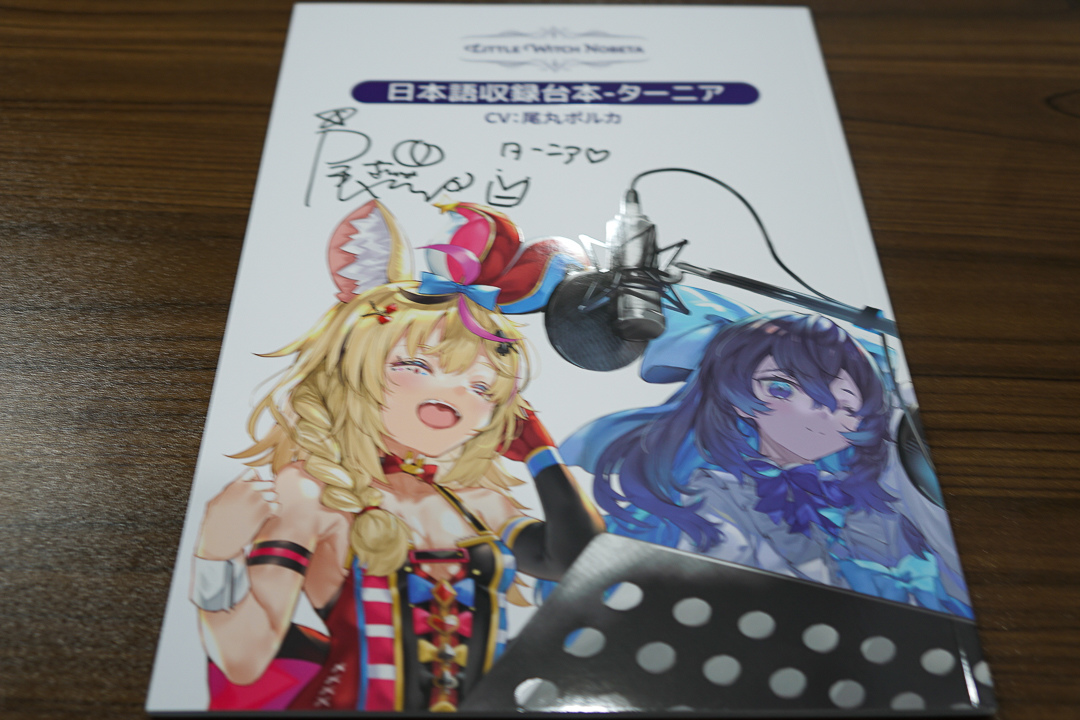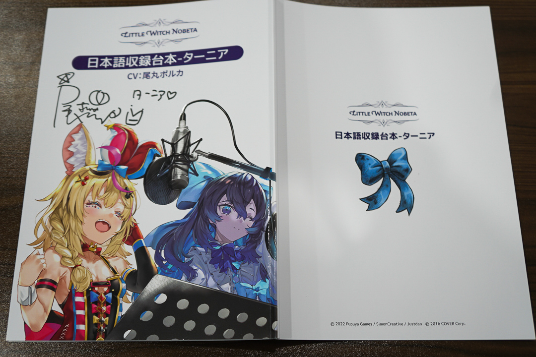 由 COVER 株式會社合作的 hololive Vtuber 尾丸波爾卡聲演生魂人偶「塔妮亞」,聯名典藏版附贈的日文台詞本還有 Vtuber 本人的複製簽名,而不單只是收錄「塔妮亞」的台詞,就連其餘首領角色的台本也一併收錄進去,還可搭配插畫有如閱讀小說一般的感受。另外由こうましろ 繪製的限定聯名布製掛軸「塔妮亞 x 尾丸波爾卡」,是為座員們準備的專屬特典。