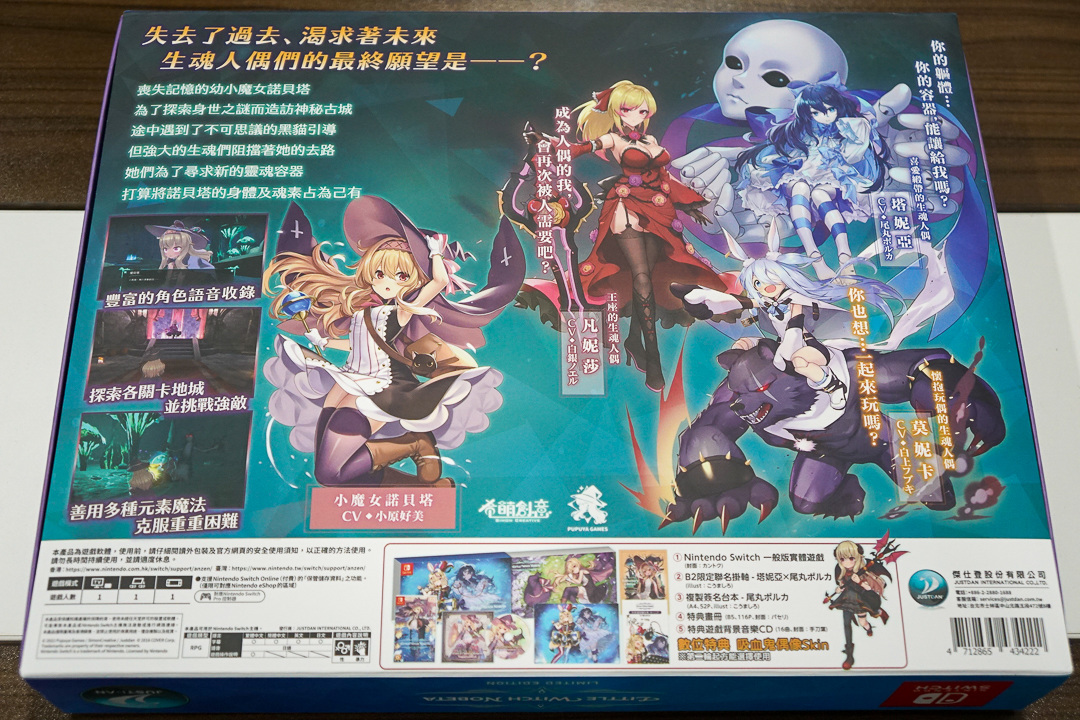 台灣獨立遊戲團隊 Pupuya Games 開發 PC / PS4 / Nintendo Switch 3D 動作冒險遊戲《小魔女諾貝塔》今日正式版發售,由希萌創意發行的聯名典藏版也於同日發售,根據不同平台版本推出與 Hololive Vtuber 合作的聯名典藏版,以下以 Nintendo Switch 以 Hololive 人氣 Vtuber 「座長」尾丸波爾卡的豪華聯名版為玩家開箱。