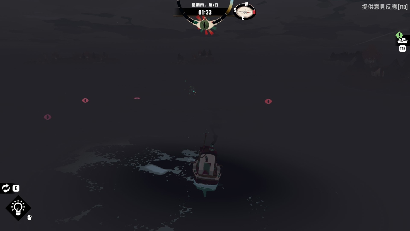 《DREDGE》在音樂及美術的搭配上給了相當悠閒的捕魚日常環境,但同時打造種種詭異的事件和恐怖氛圍勾起玩家好奇心,入夜不該出航,但各種蛛絲馬跡還是會讓人經不起誘惑,開著燈在充滿恐怖氣氛的深夜海域上冒險,想了解這片海域到底藏著什麼不可告人的祕密。