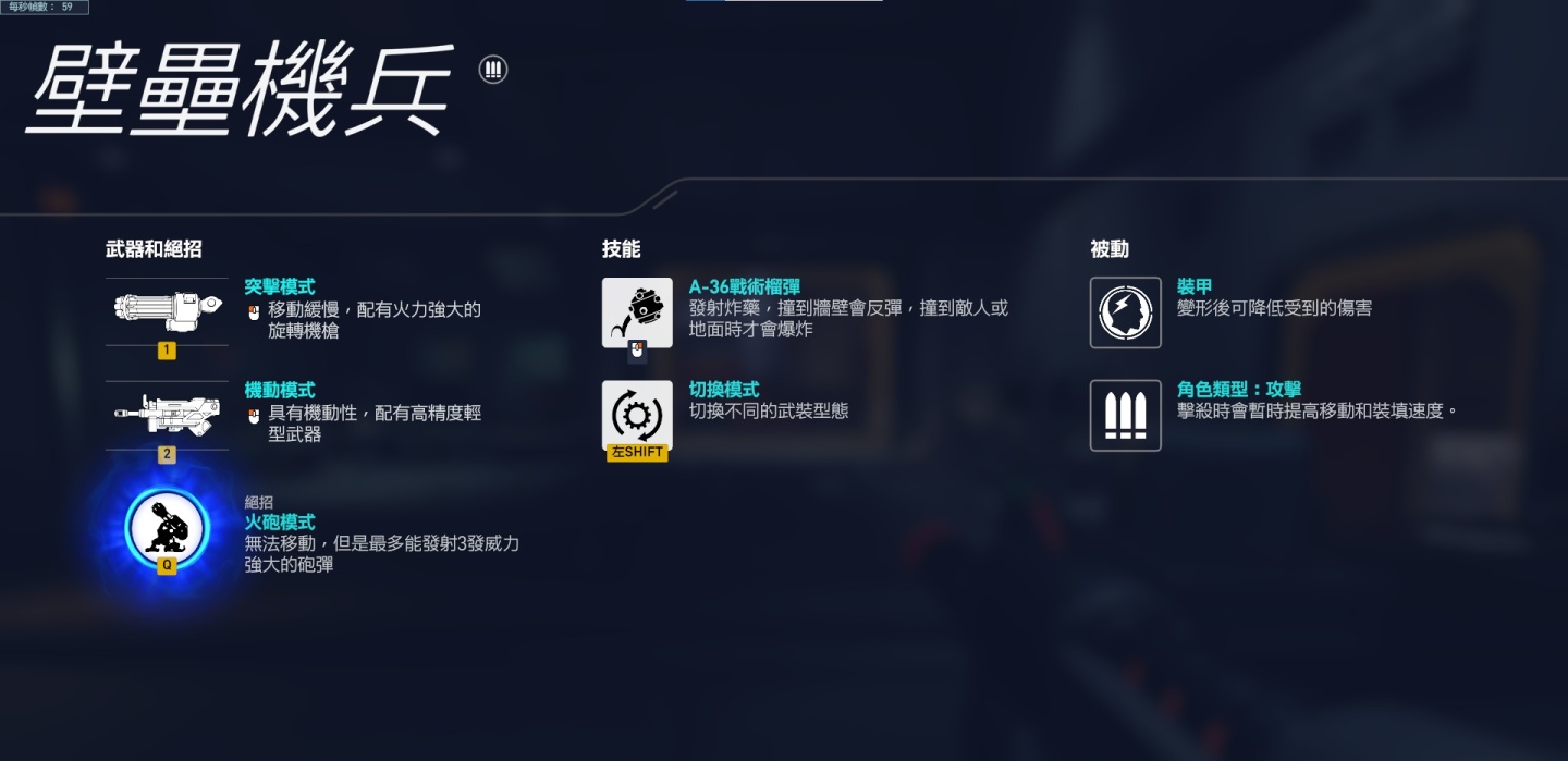 《鬥陣特攻 2》將部分前代英雄做了改動,其中「壁壘機兵」是輸出角色中變化最大的,原先定點架槍或是轉換為坦克重砲給與火力壓制,二代則是將定點機槍改為突擊模式,啟動該暫時性的技能以降低移動速度的代價,直接變為移動坦克帶著旋轉機槍並附帶裝甲減傷效果,達到邊移動邊進行火力壓制的目的。