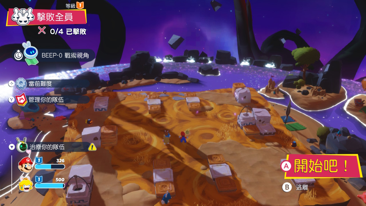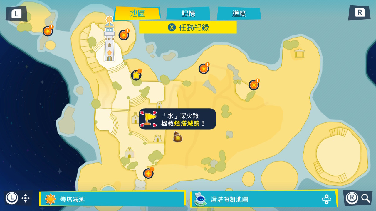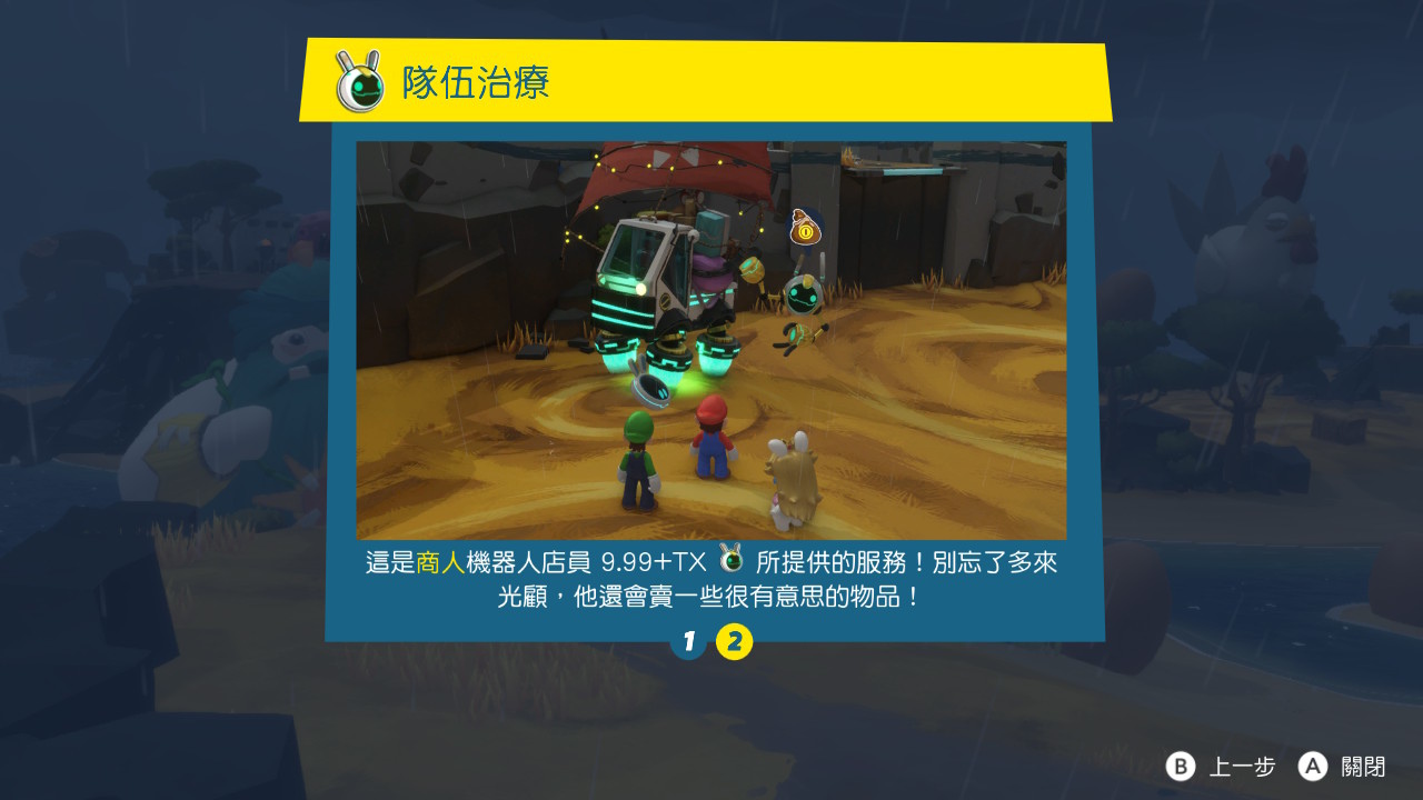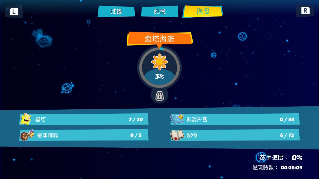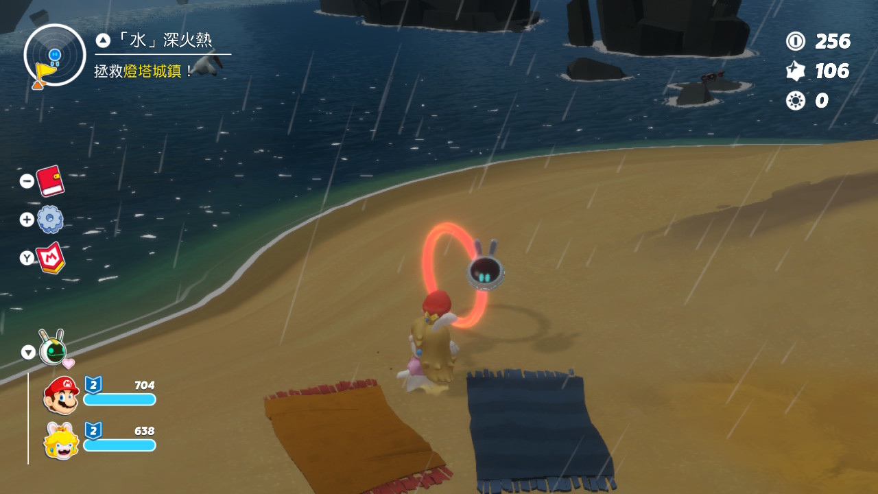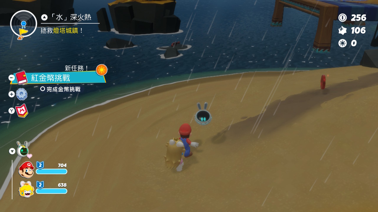 在歷經漫長的開頭後,玩家將進入第一個遊戲舞台「燈塔海灘」正式展開冒險。而系統各種功能也將正式解鎖,讓玩家們可以開始依照自己的喜好來選擇隊伍角色、自訂角色技能、星可夥伴或是裝備道具。同時,玩家也可以透過選單畫面與地圖畫面來確認目前的遊戲故事進度,以及地圖上各種任務的接取位置資訊,好好享受這場由瑪利歐與瘋兔們所帶來的盛大宇宙冒險!