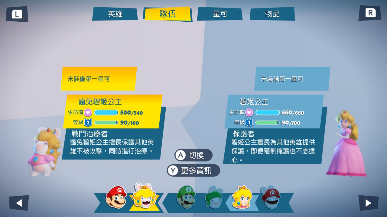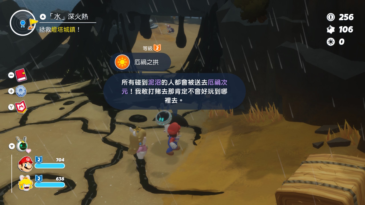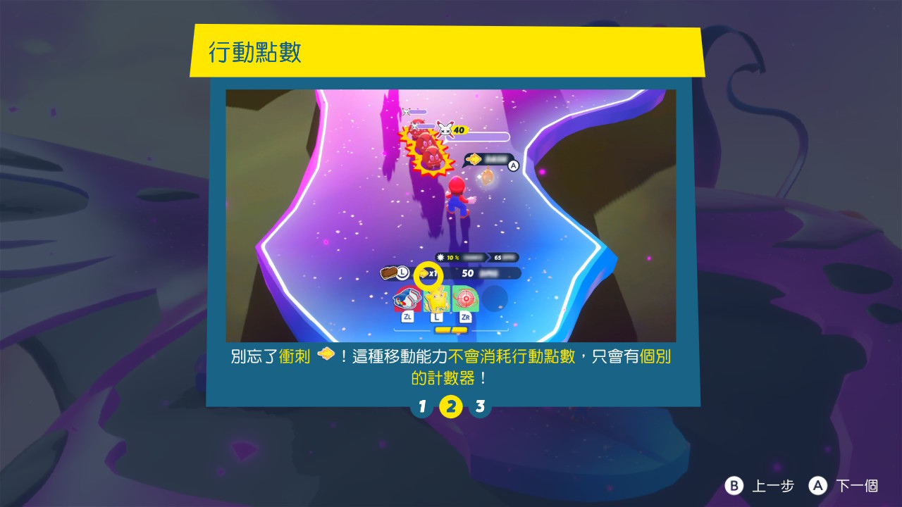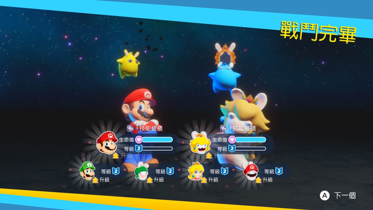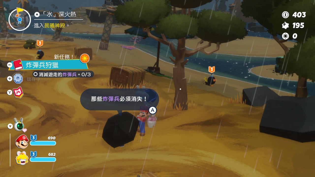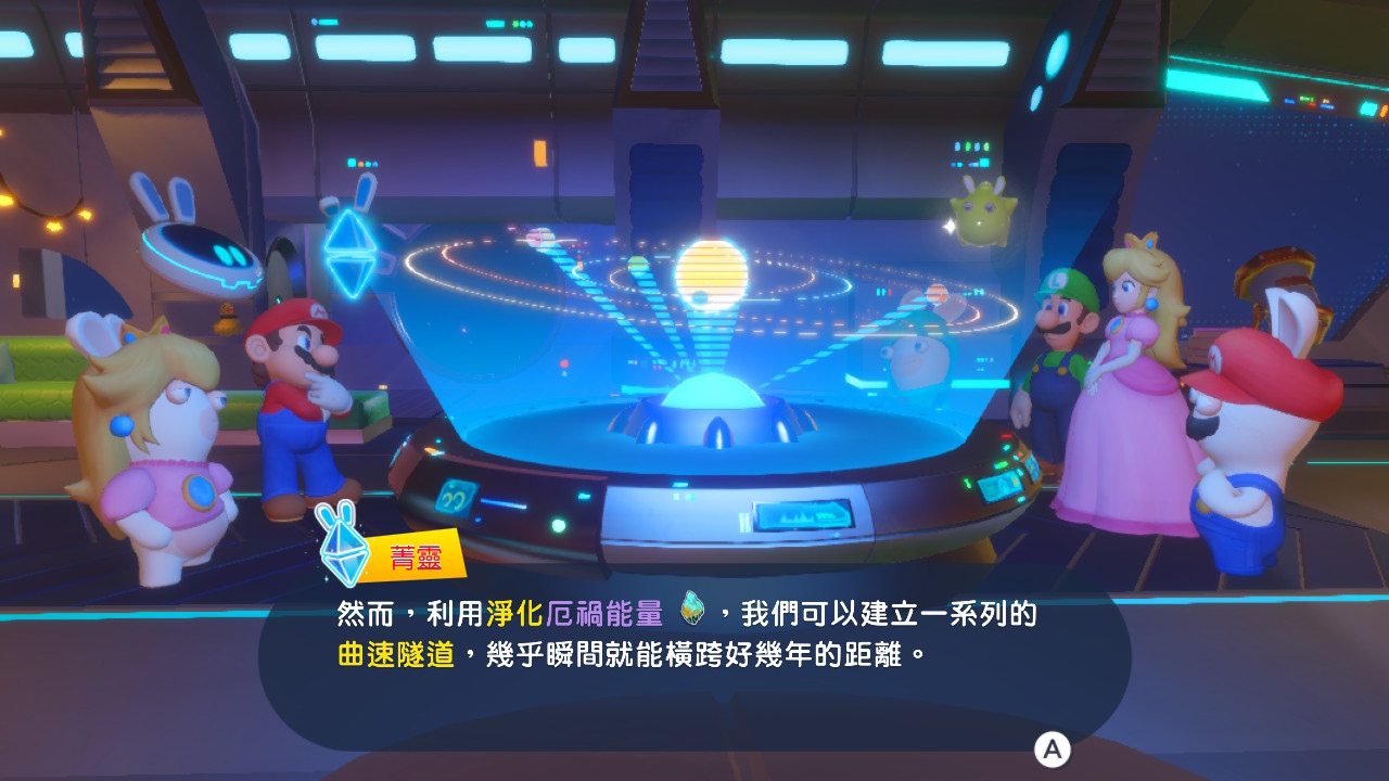 在歷經漫長的開頭後,玩家將進入第一個遊戲舞台「燈塔海灘」正式展開冒險。而系統各種功能也將正式解鎖,讓玩家們可以開始依照自己的喜好來選擇隊伍角色、自訂角色技能、星可夥伴或是裝備道具。同時,玩家也可以透過選單畫面與地圖畫面來確認目前的遊戲故事進度,以及地圖上各種任務的接取位置資訊,好好享受這場由瑪利歐與瘋兔們所帶來的盛大宇宙冒險!