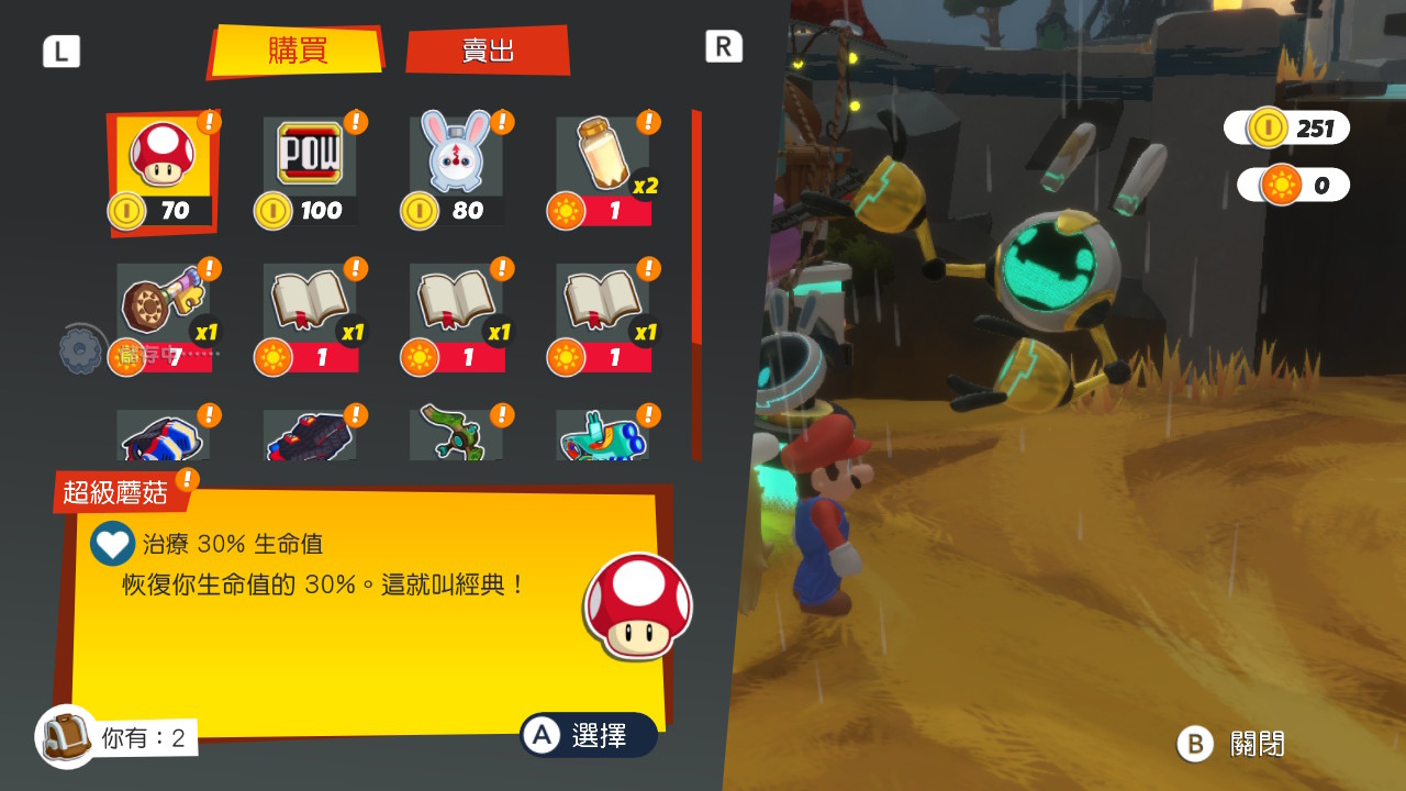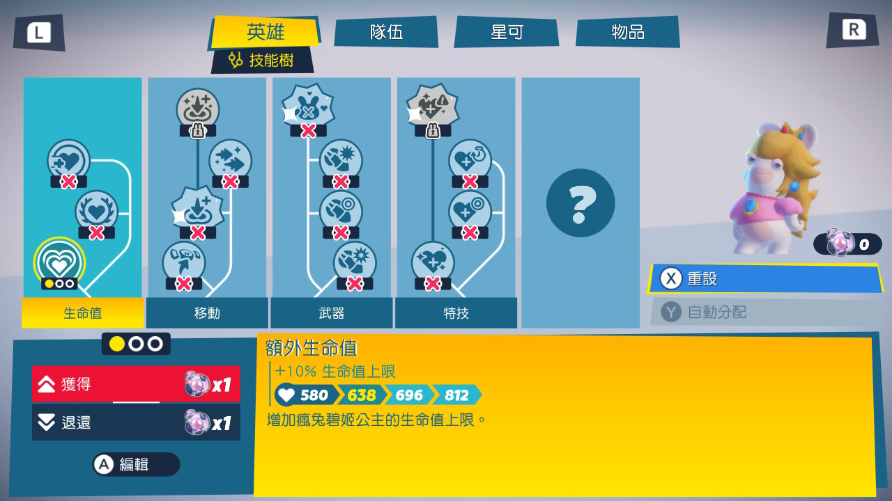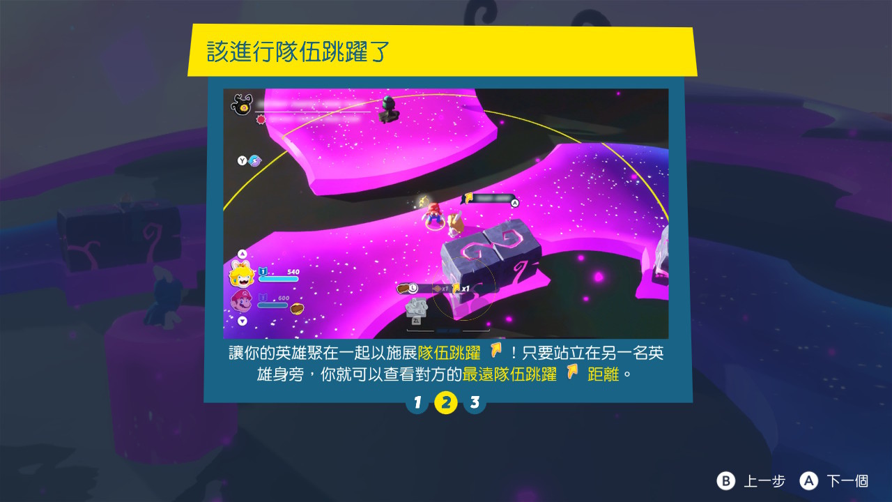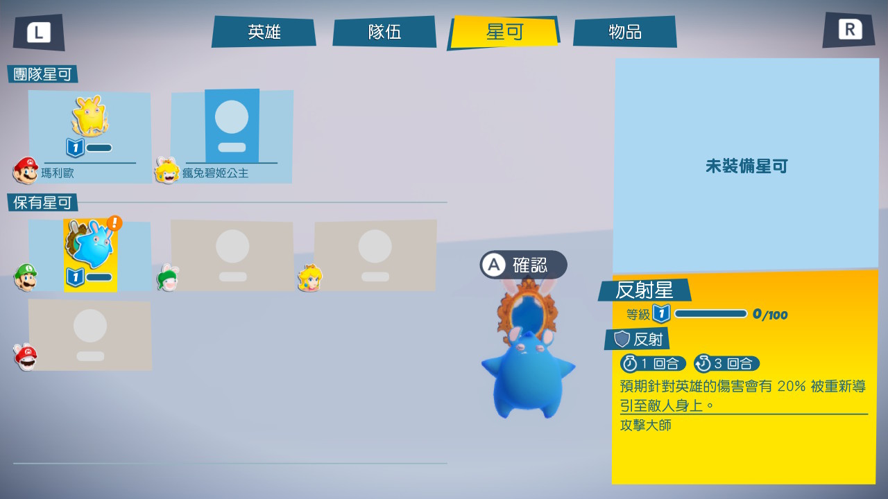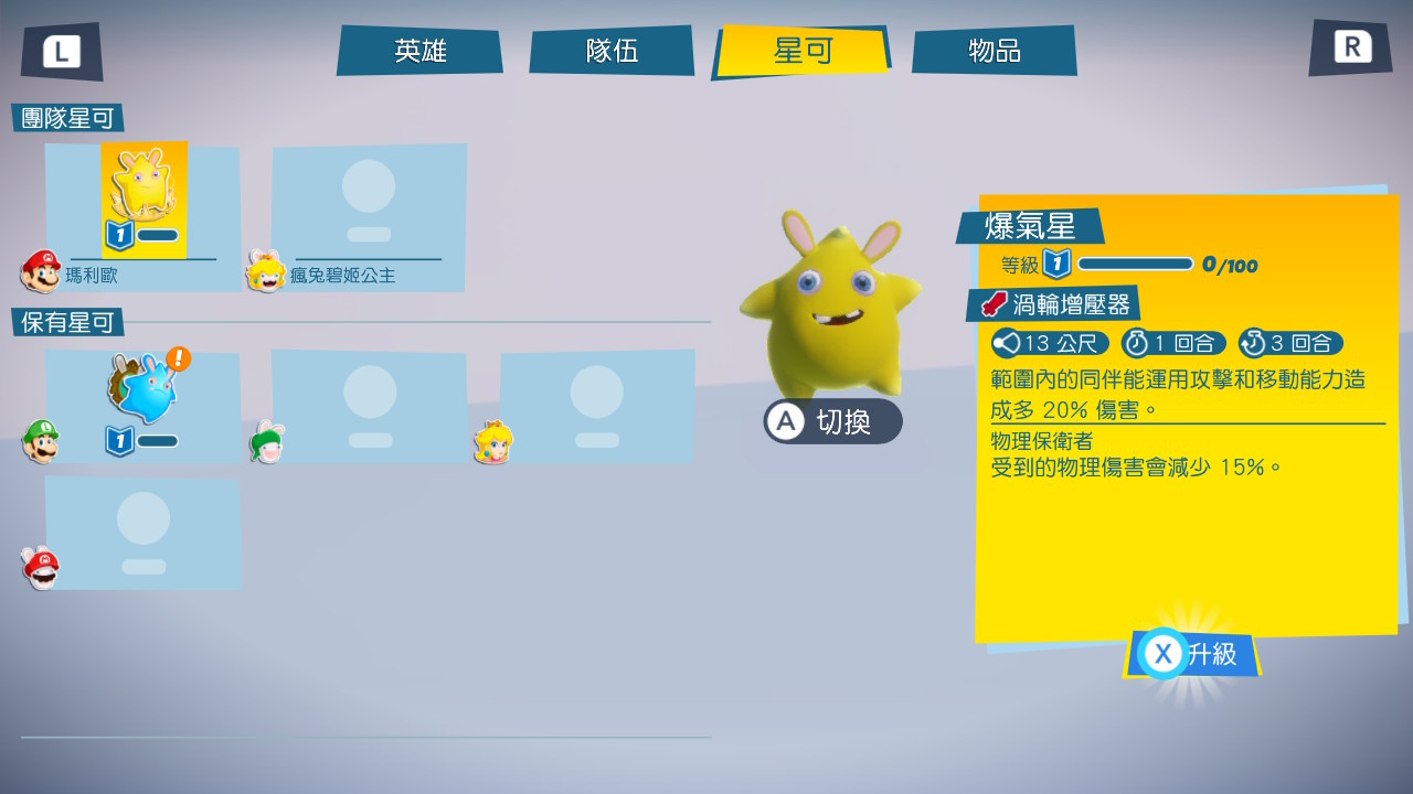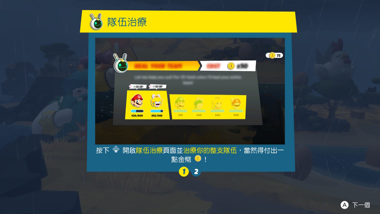 在歷經漫長的開頭後,玩家將進入第一個遊戲舞台「燈塔海灘」正式展開冒險。而系統各種功能也將正式解鎖,讓玩家們可以開始依照自己的喜好來選擇隊伍角色、自訂角色技能、星可夥伴或是裝備道具。同時,玩家也可以透過選單畫面與地圖畫面來確認目前的遊戲故事進度,以及地圖上各種任務的接取位置資訊,好好享受這場由瑪利歐與瘋兔們所帶來的盛大宇宙冒險!